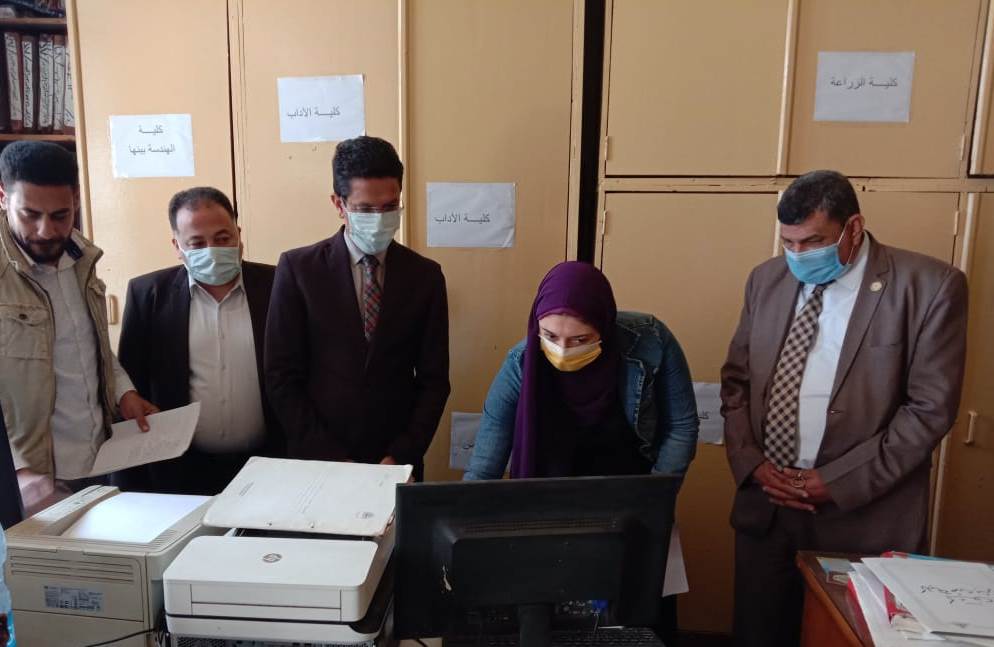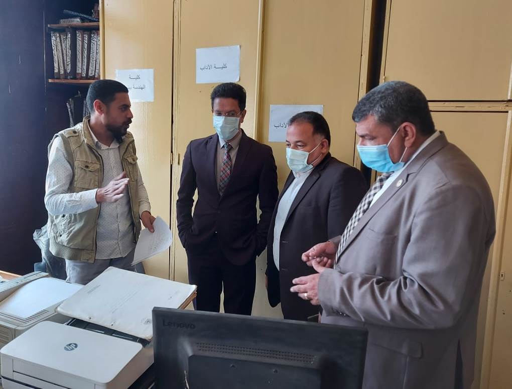 تفقد الدكتور ناصر الجيزاوى القائم بأعمال رئيس جامعة بنها إدارات العمل المختلفة بإدارة الجامعة، للاطمئنان على سير العمل بها وأحوال العاملين بالجامعة.
