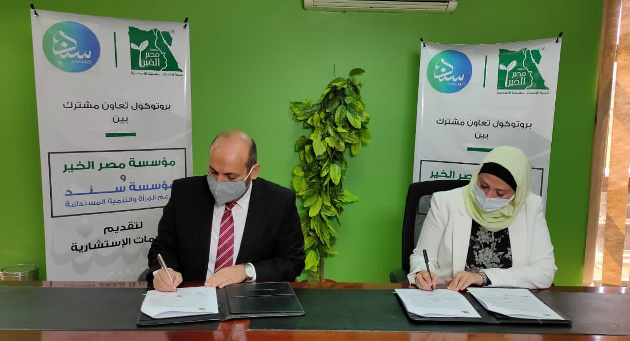 وقعت مؤسسة "مصر الخير" ومؤسسة "سند" لدعم المرأة بروتوكول تعاون لدعم المرأة المعيلة في القرى الفقيرة والنائية، والتي تتوازي مع جهود الدولة في سبيل النهوض بالمناطق الأكثر احتياجا وخاصة الفئات التي بحاجة إلى المساندة ومنها المرأة المعيلة ودعمها للحصول على فرصة عمل تحسن مستوي معيشة أسرتها.