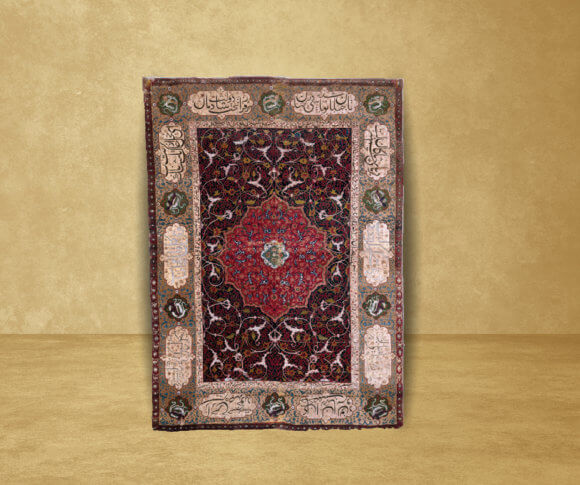 ويعرض المتحف أيضا سجادة من الصوف والحرير وموشاه بخيوط الذهب والفضة ويتوسط ساحة السجادة شكل جامه وسطى، يُزينها زخارف نباتية متداخلة ومتشابكة، كما مُلئت ساحة السجادة أيضًا بفروع نباتية متداخلة، بينما زُخرفت الإطارات بكتابات فارسية بخط النستعليق ويتوسط الكتابات في الإطار الأوسط جامات بداخلها أشكال خرافية.