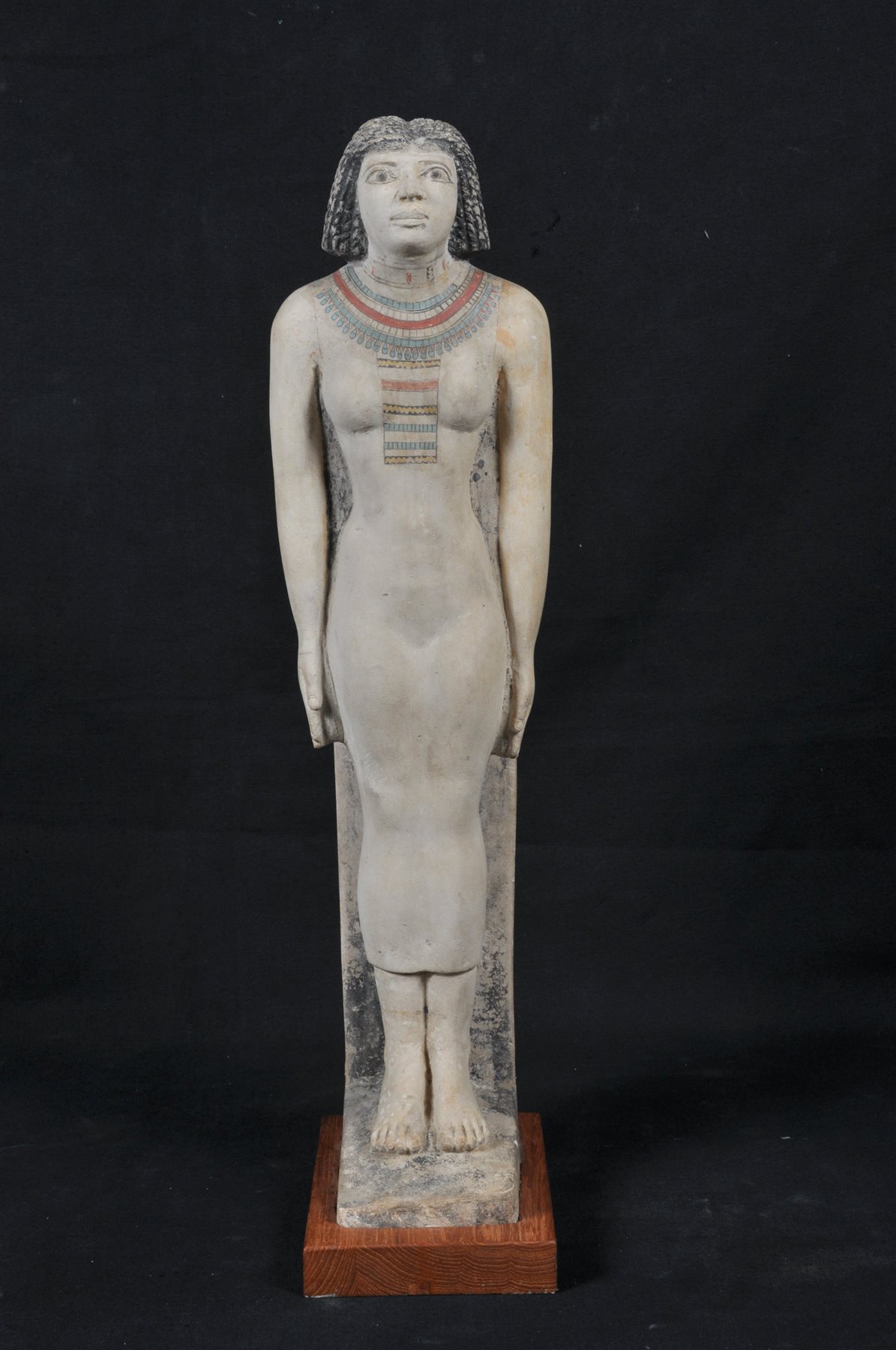 وذكر المتحف أن هذا التمثال من نتائج حفائر الجامعة المصرية عام 1934 تحت إشراف الدكتور سليم حسن، وهو تمثال من الحجر الجيري الملون لزوجة “نفر حرنبتاح فيفي” ويصل ارتفاعه لـ53 سم وعرضة 14.5 سم بالجيزة، ويعود التمثال للدولة القديمة.