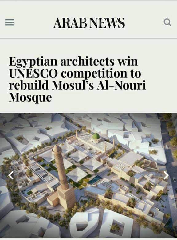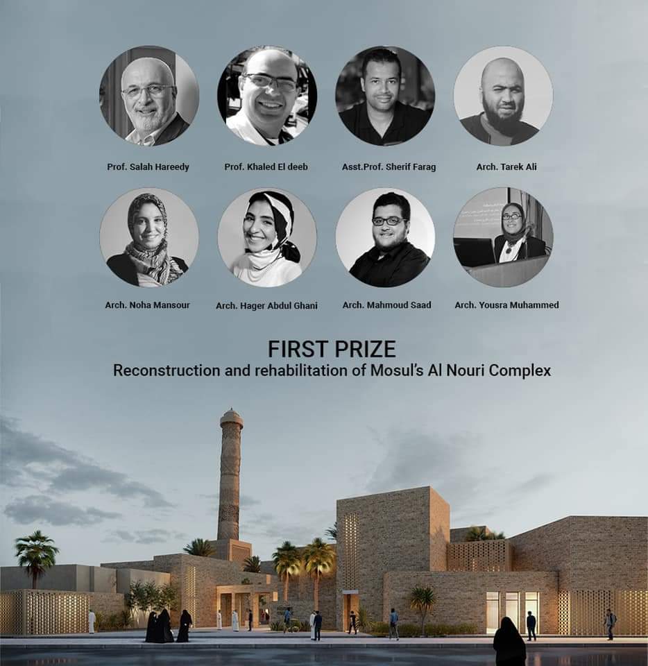 فاز 8 مهندسين معماريين من خريجي كلية الفنون الجميلة بالإسكندرية، بالمسابقة الدولية التي أعلنتها منظمة اليونسكو لإعادة بناء مجمع جامع النوري التاريخي في الموصل بالعراق.