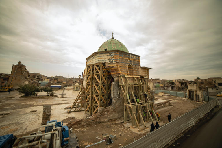 وكان مجمع جامع النوري التاريخي، قد تعرض لخسائر جسيمة خلال معارك استعادة مدينة الموصل عام 2017، وتشكل إعادة إعمار المسجد جزءًا من مشروع المنظمة لإحياء المدينة القديمة.