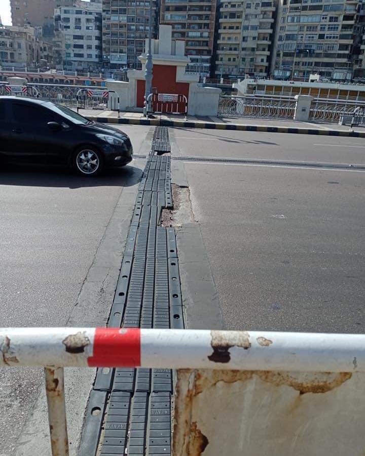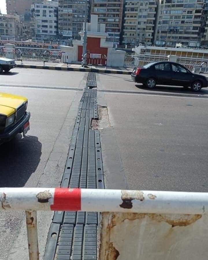 تداول عدد من نشطاء مواقع التواصل الاجتماعي صورًا لوجود كسر في الفواصل المعدنية بكوبري ستانلي بطريق كورنيش الإسكندرية، معربين عن تخوفهم من أن تتسبب في حوادث طرق للسيارات المارة بالطريق.