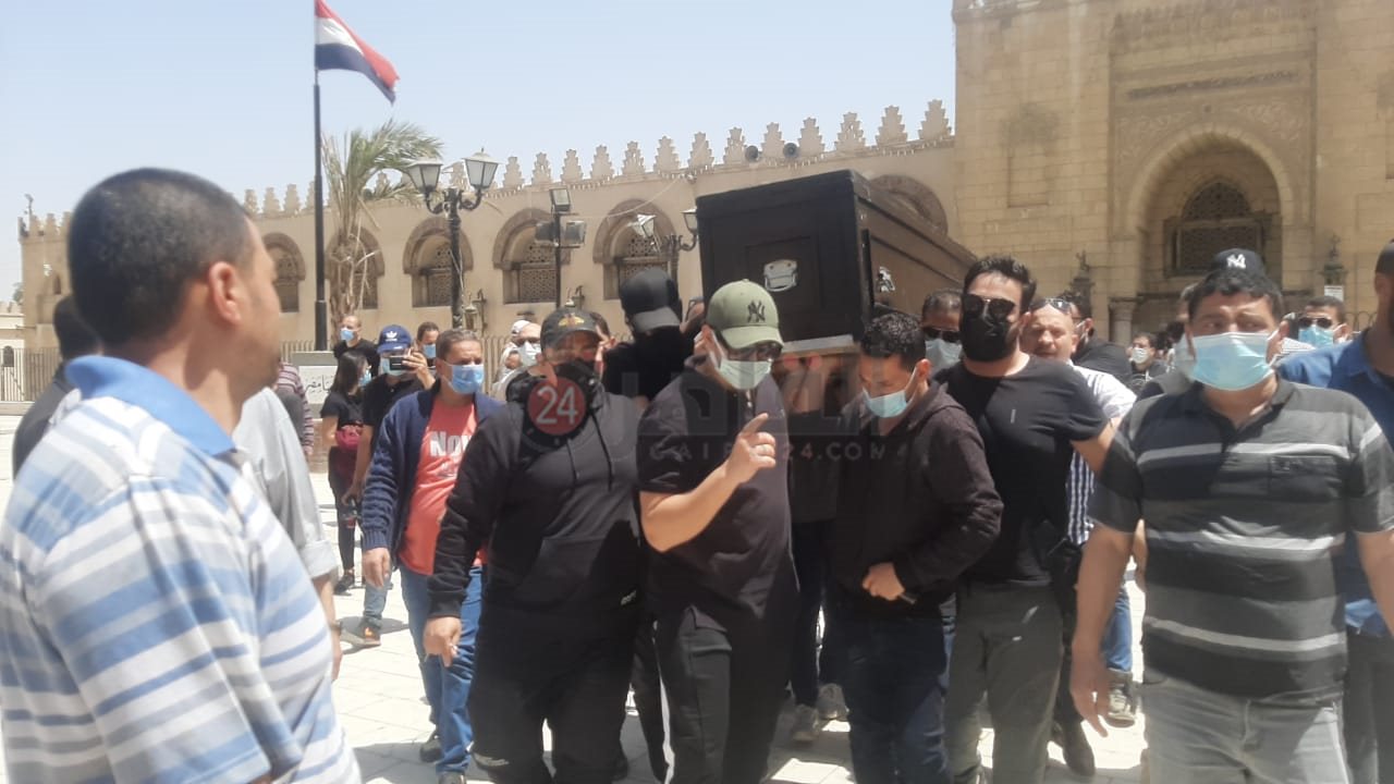 أحمد خالد صالح يحمل نعش والدته لتشييع جثمانها إلى مثواها الأخير