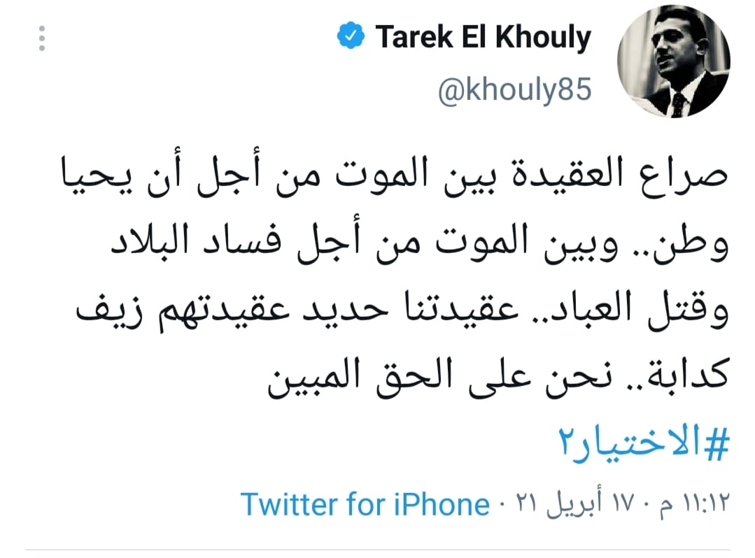 فيما علق النائب طارق الخولي، عضو مجلس النواب قائلا: “صراع العقيدة بين الموت من أجل أن يحيا وطن.. وبين الموت من أجل فساد البلاد وقتل العباد.. عقيدتنا حديد عقيدتهم زيف كدابة.. نحن على الحق المبين".