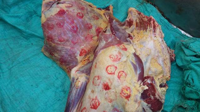 كما تحرر المحضر رقم 282 جُنح أمن دولة طواريء بلبيس لسنة 2021، ضد "أ.ح" صاحب محل جزارة؛ لعرضه لحوم بلدية مذبوحة خارج السلخانة، وجرى التحفظ على 10 كيلو جرامات لحوم.