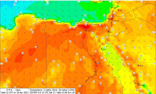 تشهد مصر موجة شديدة الحرارة على كافة أنحاء البلاد، متأثرة بنشاط منخفض السودان الموسمي الذي يأتي لأول مرة خلال فصل الربيع، حاملا معه ارتفاعا كبيرا في درجات الحرارة على كافة أنحاء البلاد، وعلى مناطق جنوب البلاد بوجه خاص، حيث تصل درجات الحرارة هناك إلى أكثر من 40 درجة مئوية.