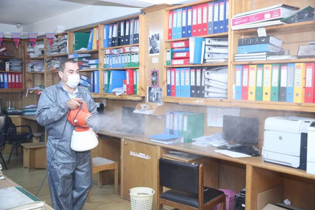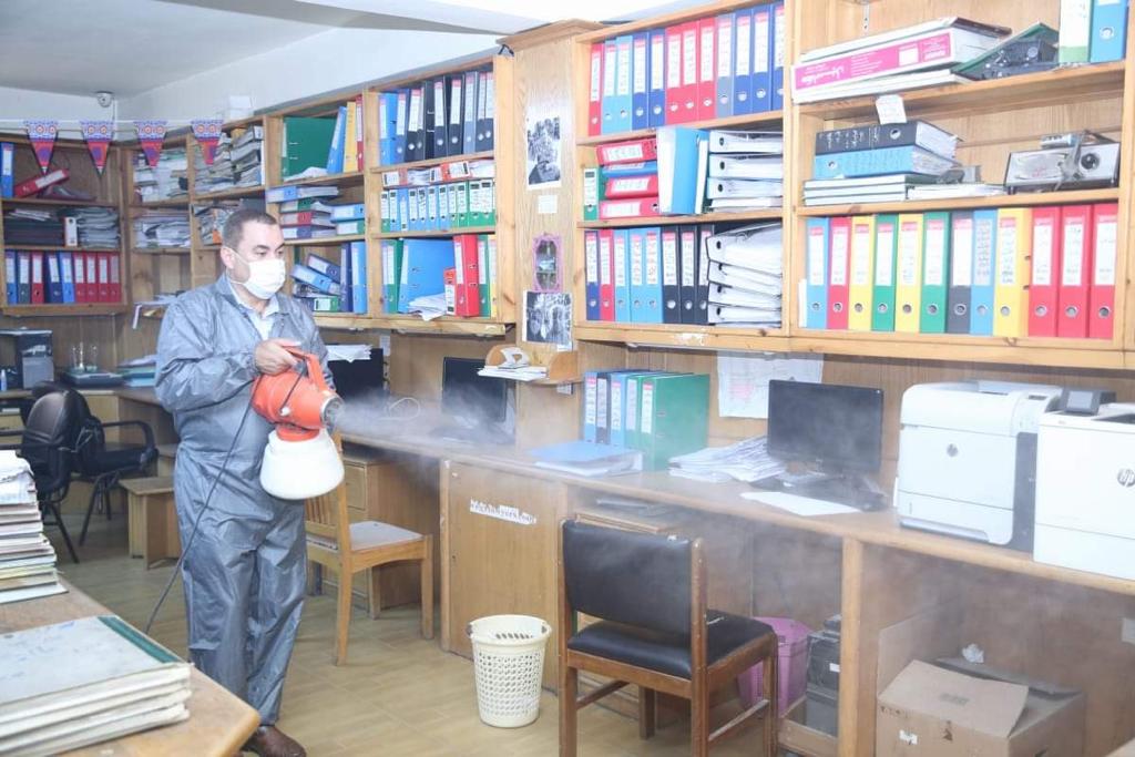 وأشار «الجمال» إلى أن الحملة مستمرة حفاظًا على صحة وسلامة الجميع، لافتًا إلى أنه قد تم التأكيد على عمال النقابة بضرورة الاستمرار في تطهير وتعقيم الغرف يوميًا بالمطهرات والمنظفات وفقا لتوصيات وزارة الصحة، وتوفير مستلزمات نظافة الأيدى إلى جانب تهوية كافة الحجرات والمكاتب وتقليل الكثافة العددية في الأماكن.
