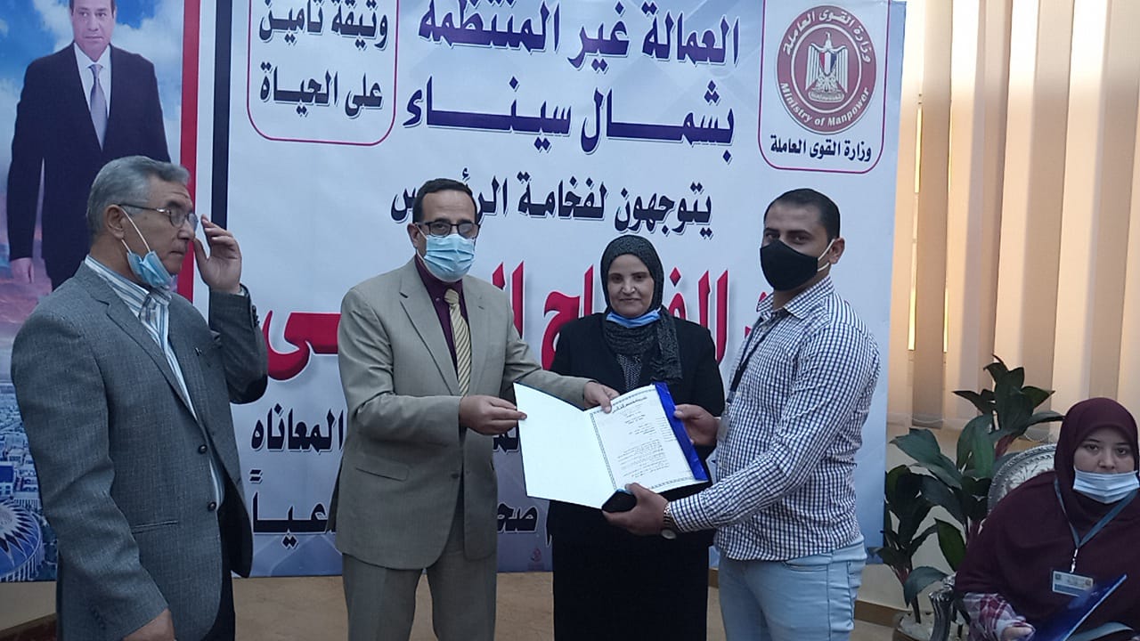 "القوى العاملة" تسلم 873 صياداً وعاملاً غير منتظم وثيقة تأمين تكافلي بشمال سيناء (صور)