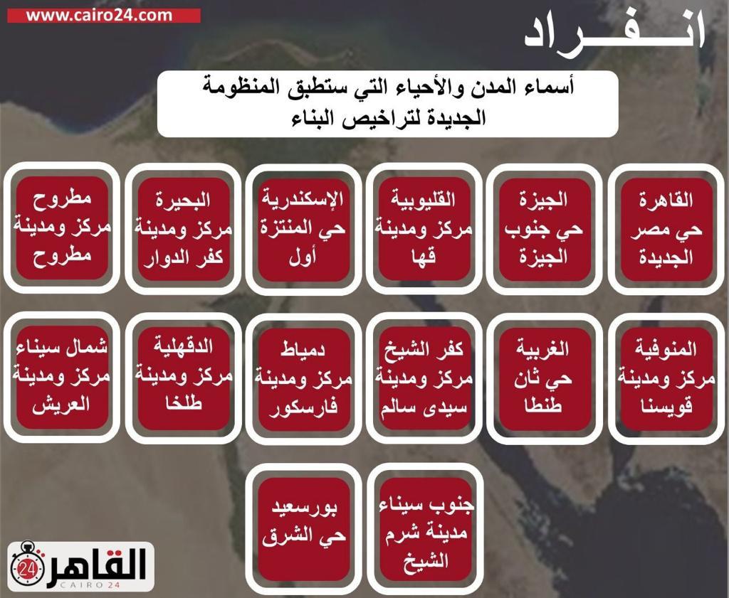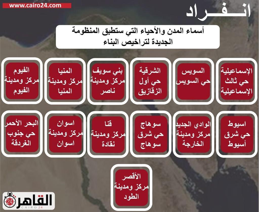 ينفرد موقع “القاهرة 24” بنشر أسماء المدن والأحياء التي ستطبق المنظومة الجديدة لتراخيص البناء.