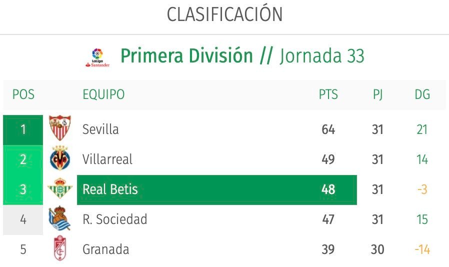 وحذف موقع ريال بيتيس الرسمي الأندية المشاركة في دوري السوبر الأوروبي وقام بوضع ترتيب جدول الدوري الإسباني "لاليجا" بدون الأندية المشاركة .