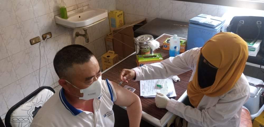 تلقى مواطن صيني يدعى Chen yona مقيم في محافظة سوهاج، ويعمل خبيرًا بمصنع الأسمنت بمركز جهينة شمالي المحافظة، الجرعة الأولى للقاح المضاد لفيروس كورونا داخل أحد المراكز المخصصة للتطعيم باللقاح.