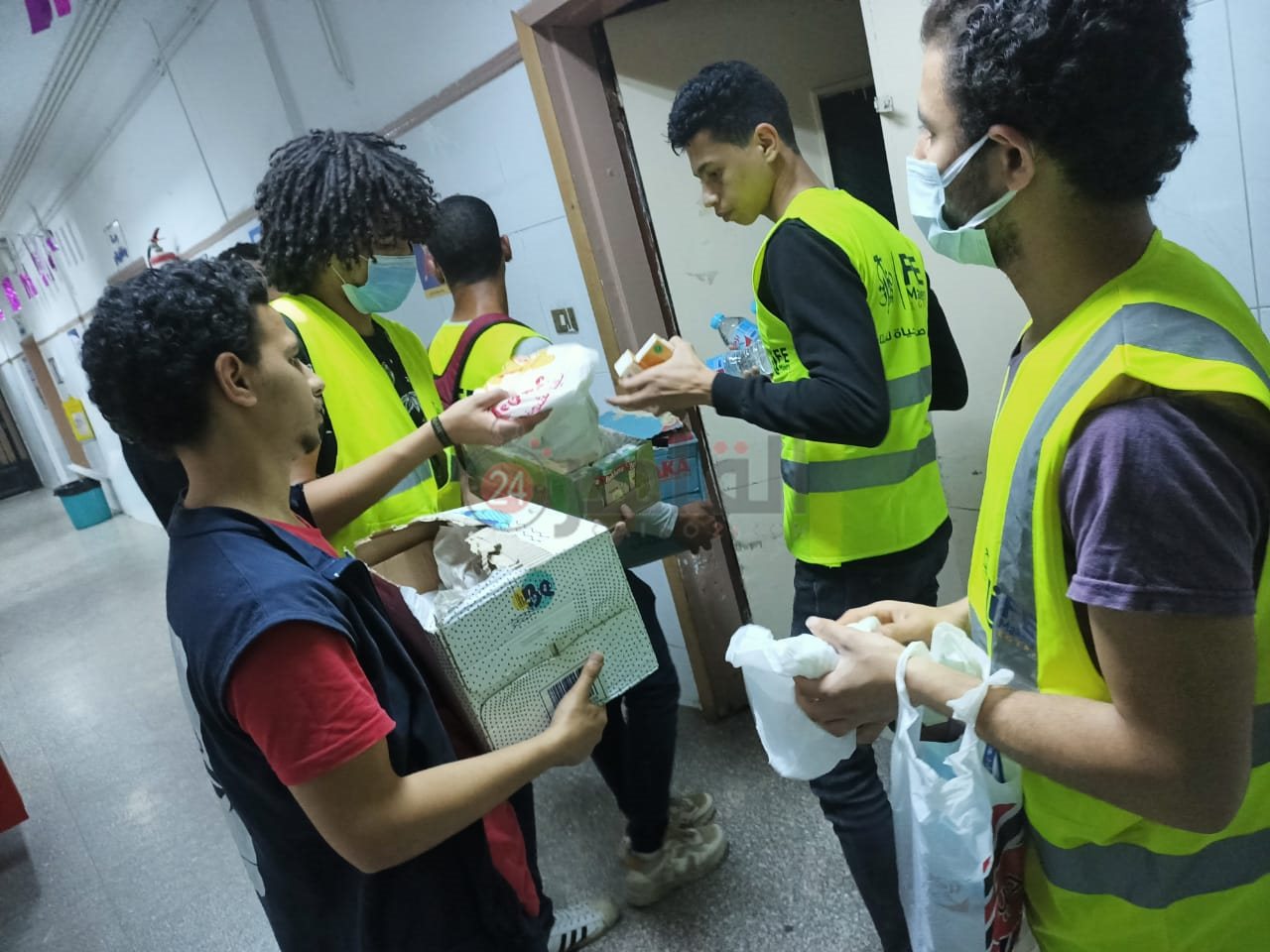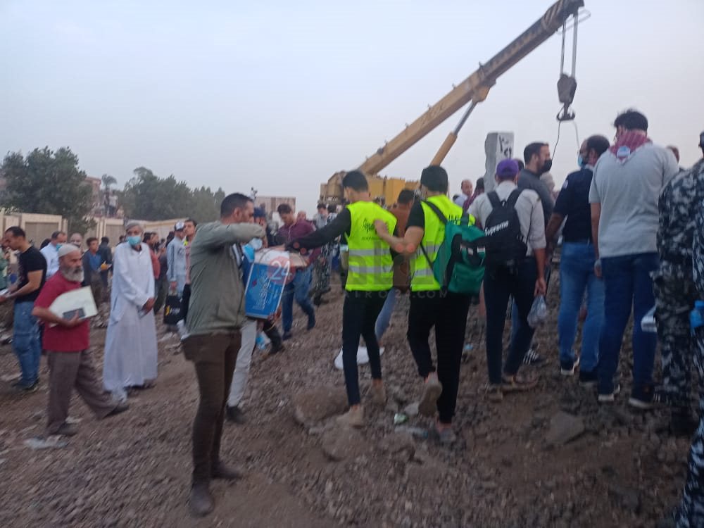 مشهد من ضمن المشاهد لشباب مؤسسة صناع الحياة، الذين تسارعوا بعد وقوع حادث قطار بنها بدءًا من الساعة الرابعة عصرًا، محملين بالوجبات والعصائر حتى المستلزمات الطبية للمستشفيات.