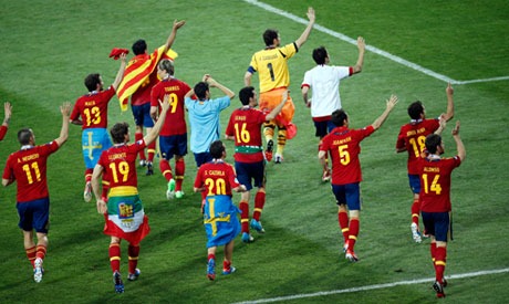 دفع ديل بوسكي، المدير الفني لمنتخب إسبانيا بتشكيل مكون من ( إيكر كاسياس ، الفارو أربيلوا، جيرار بيكيه، سيرخيو راموس، خوردي ألبا ، سيرخيو بوسكيتس، تشافي ألونسو، خافي هيرنانديز، أندرياس إنييستا سيسك فابريجاس، دافيد سيلفا)