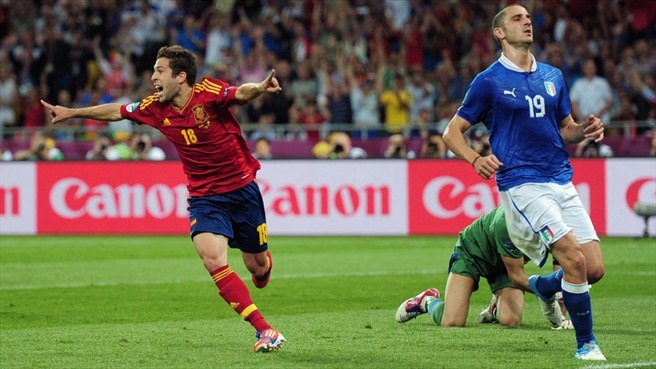 كعادة منتخب إسبانيا، لم يستطع أحد مجاراته في البطولة، منتخب إيطاليا متراجع بشكل كبير، أمام استحواذ وهجومي إسباني، لكن دفاعات إيطاليا لم تصمد كثيرًا فقد تلقت الهدف الأول في الدقيقة 14 عن طريق دافيد سيلفا، وحاول المنتخب الإيطالي الضغط نوعًا ما على منتخب إسبانيا إلا أن الماتادور سجل الثاني عن طريق جوردي ألبا في الدقيقة 41.