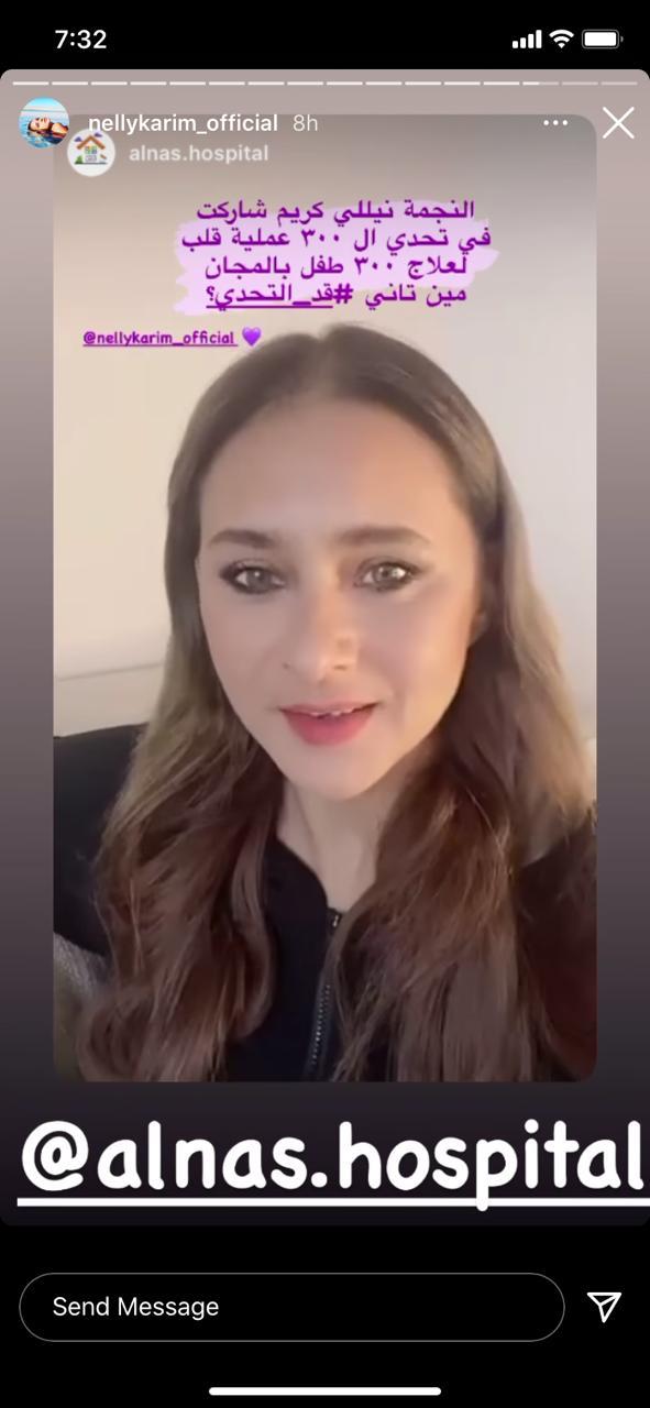 ونشرت نيللي كريم فيديو لها عبر خاصية ستوري بموقع التواصل الاجتماعي انستجرام، تعلن من خلاله مشاركتها في تحدي الخير، من أجل إجراء 300 عملية قلب مفتوح للأطفال بالمجان.