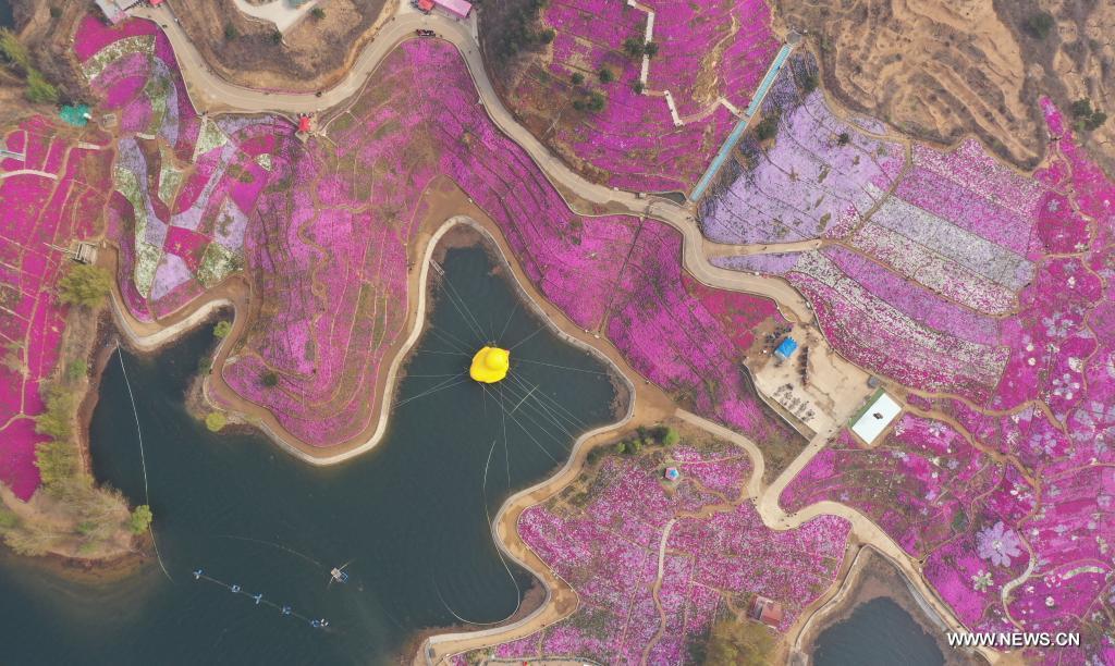 نشرت وكالة "شنخوا" الصينية صورًا ملتقطة، لأزهار وردية اللون كاملة الإزهار على ضفة خزان داهيتينغ في محافظة تشيانشي بمقاطعة خبي شمالي الصين، ما يشكل مناظر ربيعية جميلة وخلابة.