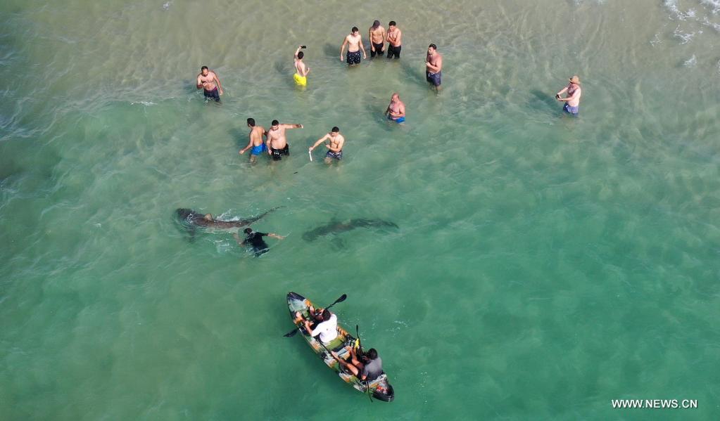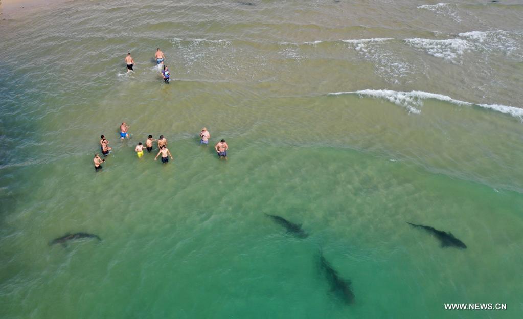 نشرت وكالة "شنخوا" الصينية صورًا ملتقطة، لإسرائيليين يسبحون بالقرب من أسماك القرش في البحر الأبيض المتوسط، قبالة ساحل مدينة الخضيرة شمالي الأراضي المحتلة.