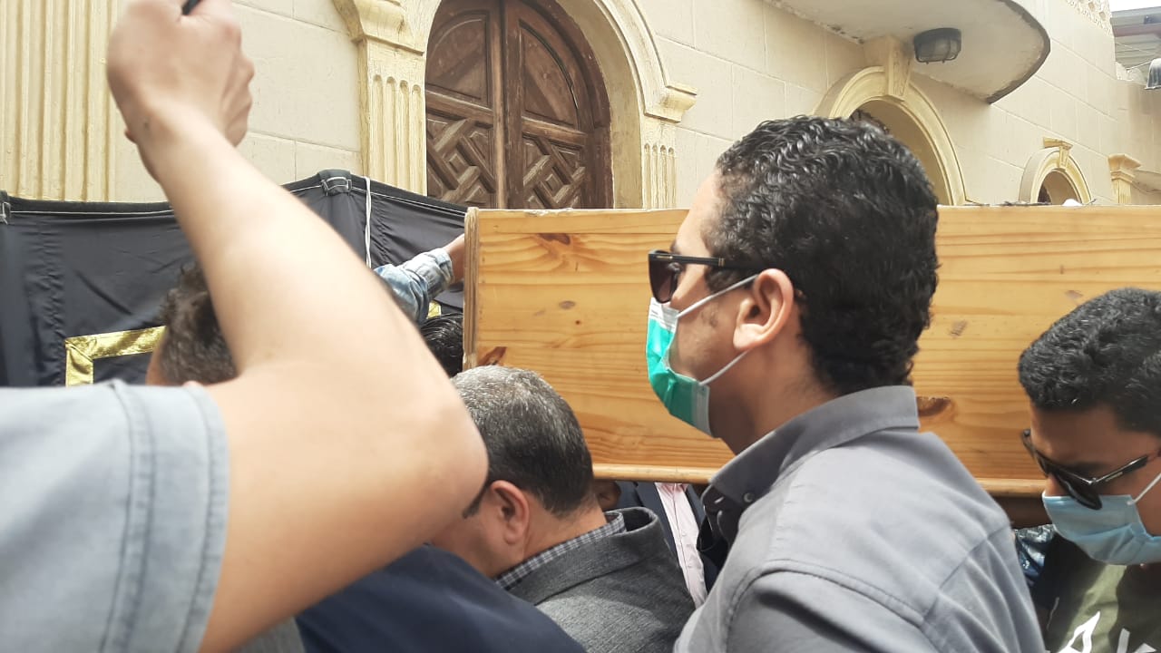 انهارت أسرة السيناريست مصطفى محرم أثناء لحظة دفن جثمانه، وحاول الحاضرون تهدئتهم.