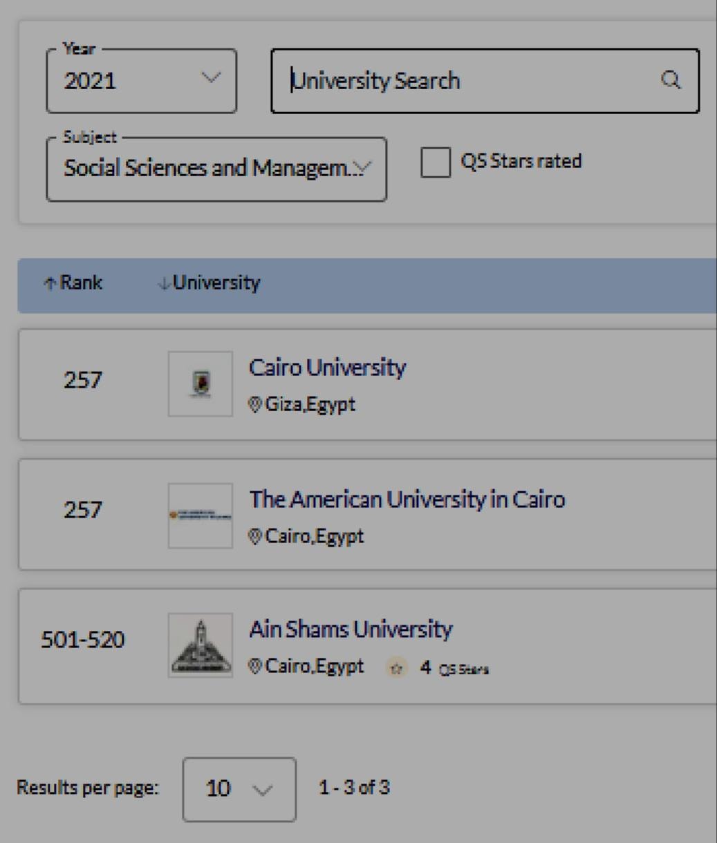 أعلن الدكتور محمد عثمان الخشت رئيس جامعة القاهرة، تحقيق قفزة غير مسبوقة في التصنيف الإنجليزي (QS) لأفضل الجامعات في مجالات العلوم الإنسانية والآداب والعلوم الاجتماعية والإدارية، حيث جاءت الجامعة ضمن أفضل 300 جامعة عالمية راقية، ومن بين 1% من الجامعات التي تم اختيارها وتصنيفها من بين أكثر من 30 ألف جامعة في العالم، بالإضافة إلى احتفاظها بصدارة الجامعات المصرية.