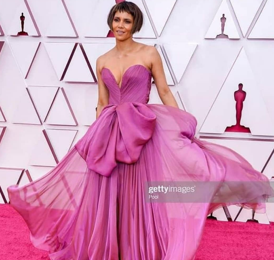 هالي بيري تخطف الأنظار بفستان وردي على السجادة الحمراء لحفل جوائز الأوسكار