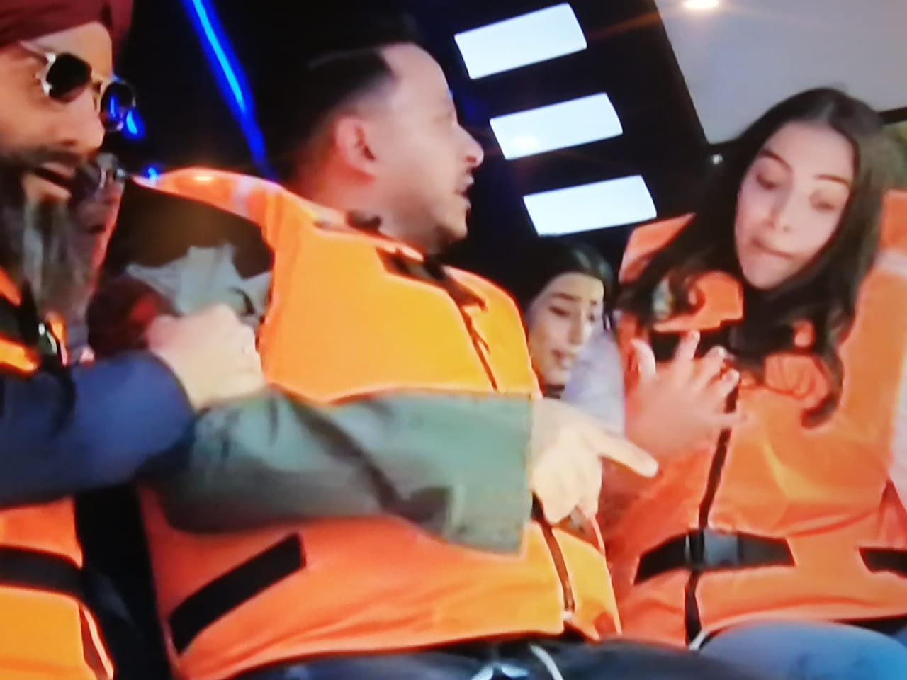 وبعد اكتشاف المقلب عاتب كريم عفيفي رامز جلال، قائلا: أنا أصلا بخاف من الملاهي يا رامز، ومراتي بتتحايل علي علشان نروح.