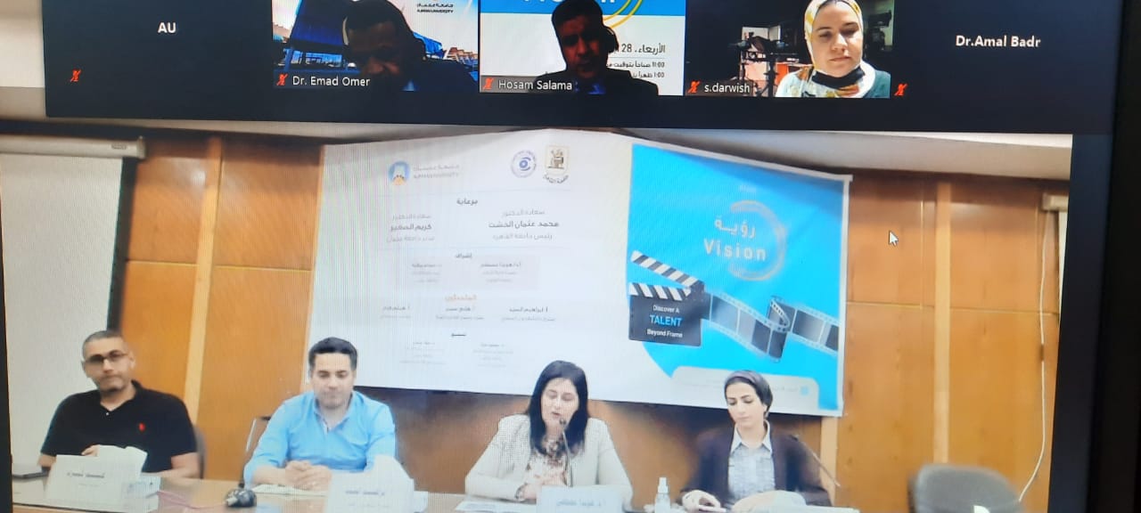 نظمت كلية الإعلام جامعة القاهرة، ظهر اليوم الأربعاء، الملتقى الإليكتروني "رؤية.. اكتشاف الموهبة في صناعة الأفلام الوثائقية" عبر المنصة الإليكترونية زووم، بالتعاون مع جامعة عجمان، برعاية الدكتور محمد عثمان الخشت رئيس جامعة القاهرة، و الدكتور كريم الصغير مدير جامعة عجمان، وإشراف الدكتورة هويدا مصطفى عميدة كلية الإعلام جامعة القاهرة، والدكتور حسام سلامة عميد جامعة عجمان.