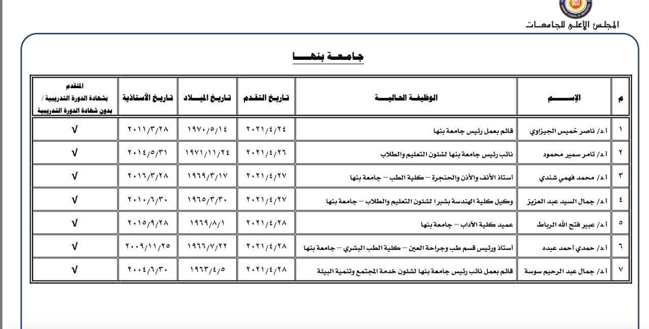 وأشار المجلس الأعلى للجامعات، إلى أن ذلك يأتي بعد صدور قرار وزير التعليم العالي والبحث العلمي ورئيس المجلس الأعلى للجامعات رقم (293) بتاريخ 27/1/2021، والمنشور بالجريدة الرسمية في السبت الموافق 30 يناير 2021 ، بشأن إعادة تشكيل اللجان المختصة بترشيح رؤساء الجامعات وعمداء الكليات والمعاهد وتنظيم عملها، وإجراءات وشروط الترشح ومعايير المفاضلة، وكذا القرار الوزاري رقم (1065) بتاريخ 22/3/2021 بشأن تشكيل اللجنة المختصة بترشيح رؤساء الجامعات.