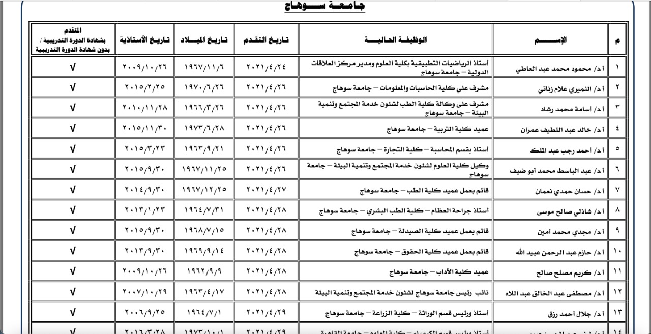 ينشر موقع ”القاهرة 24“ قائمة الترشيحات المبدئية لرئاسة 8 جامعات حكومية وهي: القاهرة - حلوان - دمياط - السويس - قناة السويس - سوهاج - بني سويف - بنها.