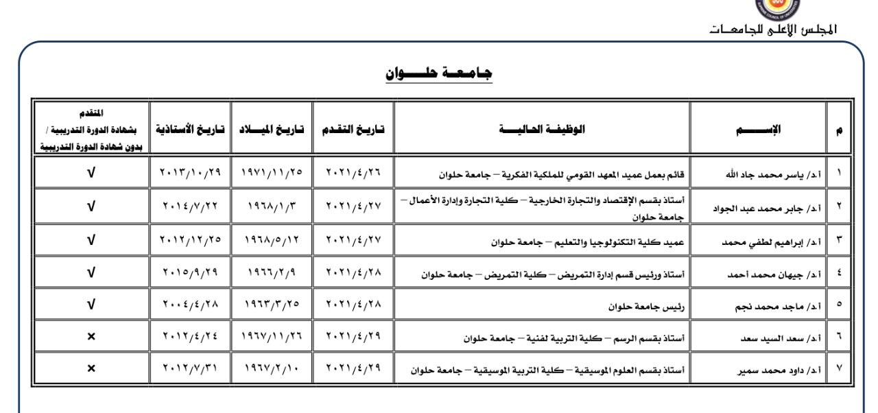 كما ضمت الأوراق، بيان حالة يشتمل على الإعارات والإجازات والمهمات العلمية بالخارج والجزاءات على أن يكون معتمدا ومختوما من الجامعة، بجانب خطة لتطوير الجامعة، ولابد أن تتضمن الأوراق المقدمة، شهادة الحصول علي الدورة التدريبية المؤهلة للترشح من أحد الجهات التي حددها المجلس الأعلى للجامعات، وفي حالة عدم وجود الشهادة عند التقدم، يجب تقديمها قبل إعلان القائمة النهائية واجتماع لجنة البت في الطعون وإلا سيكون التقدم لاغيا.