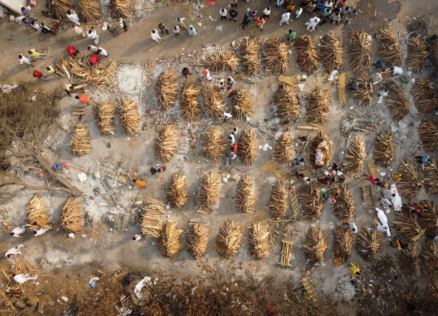وفي بعض المدن الهندية الأكثر تضررًا بوفيات الجائحة، تم حرق الجثث في منشآت مؤقتة في الحدائق ومواقف السيارات، لعدم وجود أماكن متاحة في المحارق المستخدمة لحرق جثث الموتى وفقًا للديانة البوذية.
