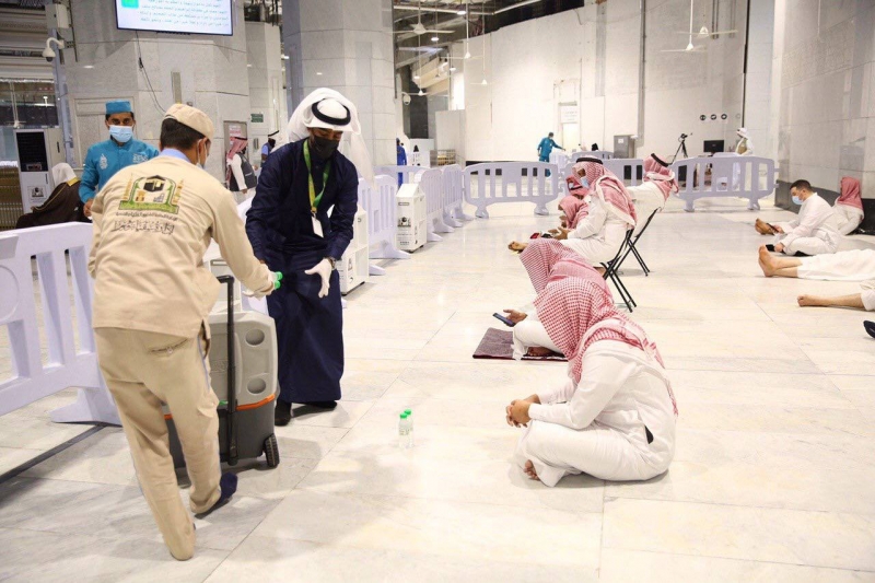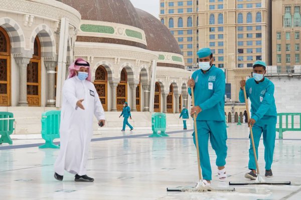 كما خصصت الوكالة لأعمال التطهير والتعطير عدة فرق توزع في جميع جنبات المسجد الحرام ومرافقه، بحيث يتم غسيل المسجد الحرام 10غسلات لسلامة قاصدي المسجد الحرام، كما تم توزيع أكثر من 500 جهاز آلي لتعقيم الأيدي بخاصية الاستشعار.