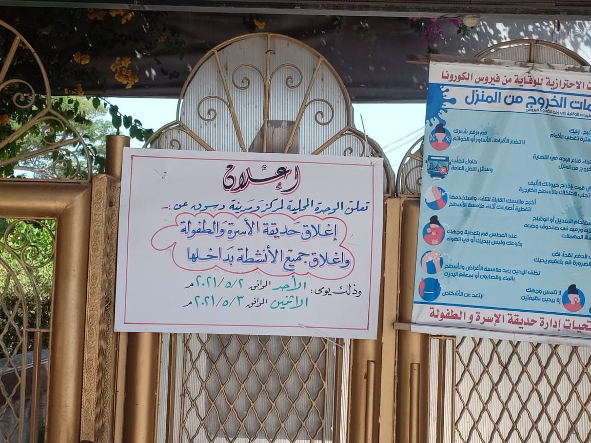 بالإضافة إلى منع كافة التجمعات أو إقامة أي احتفالات أو فعاليات في كافة الأماكن وعلى أفرع نهر النيل" دسوق، فوه، مطوبس أو بحدائق إدفينا وشواطئ المصيف، ومراقبة المراسي النيلية، بالتنسيق مع الجهات الأمنية في هذا الشأن، وسيستمر غلق الحدائق والمتنزهات لغد الاثنين.