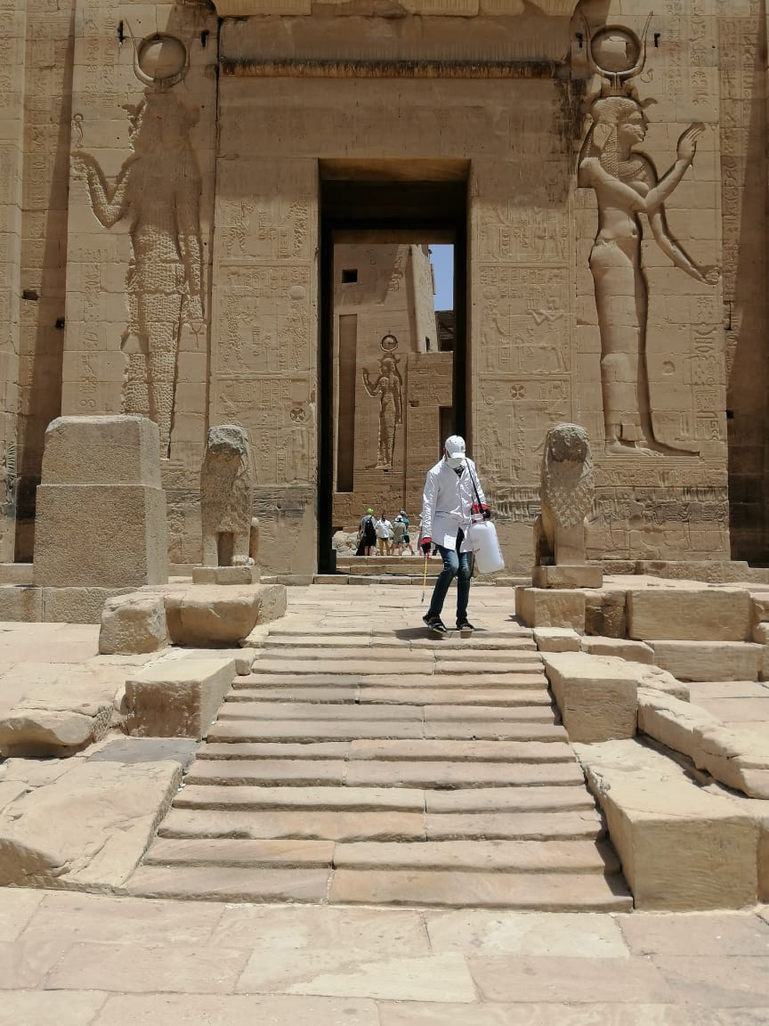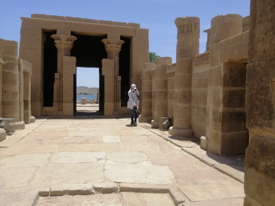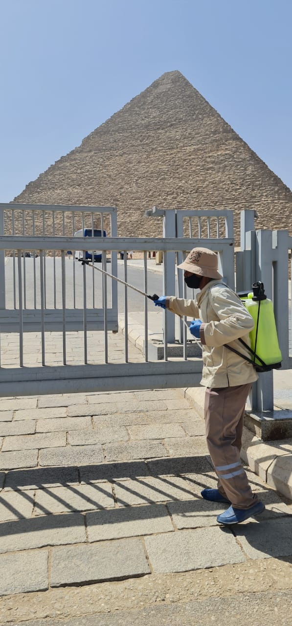 وأوضح الأمين العام للمجلس الأعلى للآثار، أن أعمال التطهير والتعقيم تتم بصفة يومية فى كافة المتاحف والمواقع الأثرية على مستوي الجمهورية منها متحفي شرم الشيخ والغردقة، والمتحف المصري بالتحرير، ومتحف آثار الأقصر، ومتحفي روميل ومطروح بمحافظة مطروح، وقلعة صلاح الدين الأيوبي بالقاهرة، ومناطق آثار الهرم وميت رهينة، وقصر البارون، وقلعة قايتباي، ومنطقة آثار الأنفوشي وعامود السواري بالاسكندرية، ومنطقة معابد فيلة، وجزيرة ألفنتين د، ومعابد أبو سمبل بأسوان وغيرها من المتاحف والمواقع الأثرية، لافتاً إلى أن إجراءات التطهير والتعقيم تتم وفقاً للمعاير الدولية لاجراءات التطهير، وباستخدام مواد معتمدة من وزارة الصحة والسكان.