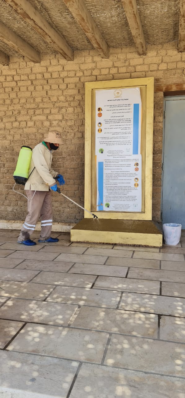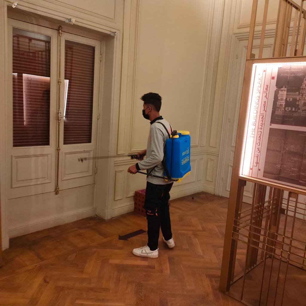 وتشمل أعمال التطهير والتعقيم جميع الأسطح بمناطق الخدمات السياحية للزائرين والمداخل والمخارج الخاصة بهذه المناطق، وشباك التذاكر بهذه المناطق، ودورات المياه، والممرات الداخلية والخارجية والمكتبات والمكاتب الإدارية للعاملين والأماكن الخاصة بحراس الأمن، والأبواب والمسطحات التي من الممكن أن يتكأ عليها الجمهور، بالاضافة الي الحدائق الموجودة بالمتاحف وأماكن جلوس الزائرين وغيرها من الأماكن الملامسة للإنسان.