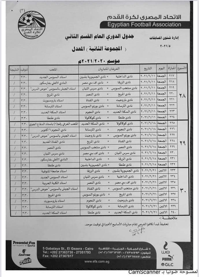 تعديل جدول مباريات المجموعة الثانية وميعاد انتهاء دوري الممتاز ب