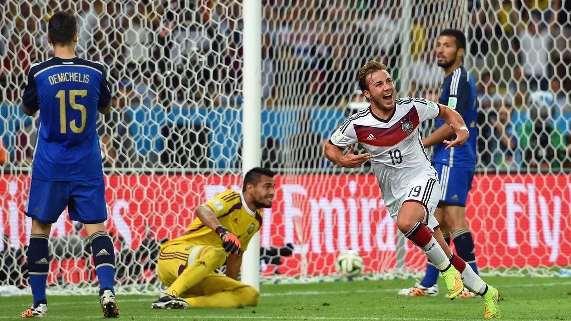 مر الوقت بسلام على المرميان، ومعه الشوط الأول الإضافي، لكن قبل دقائق فقط من نهاية اللقاء، تمريرة من اليسار عن طريق أندريه شورله والتي وصلت لماريو جوتزة الذي وضعها في الشباك، ليقود منتخب ألمانيا باللقب.