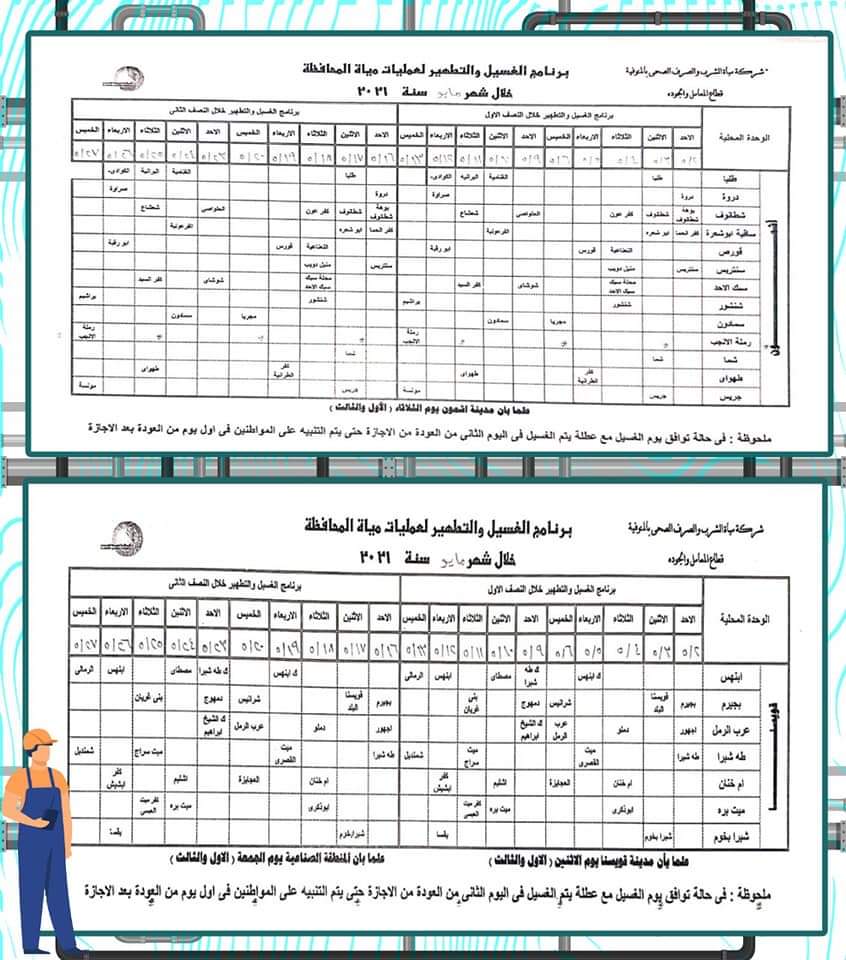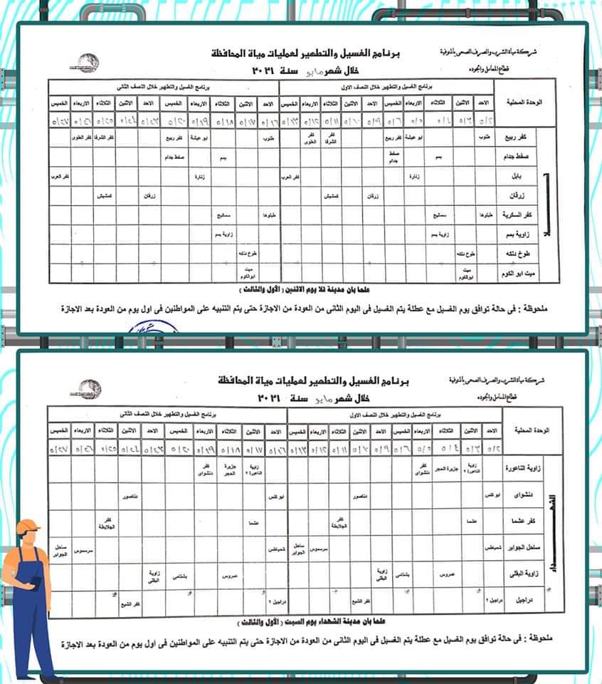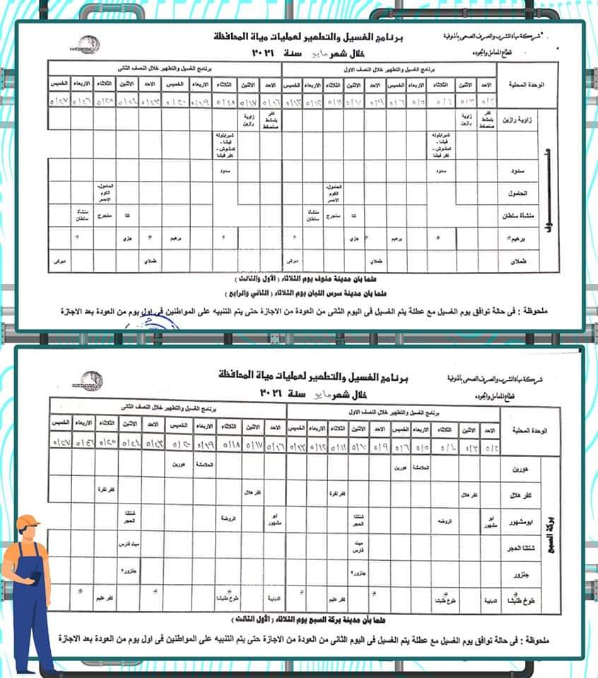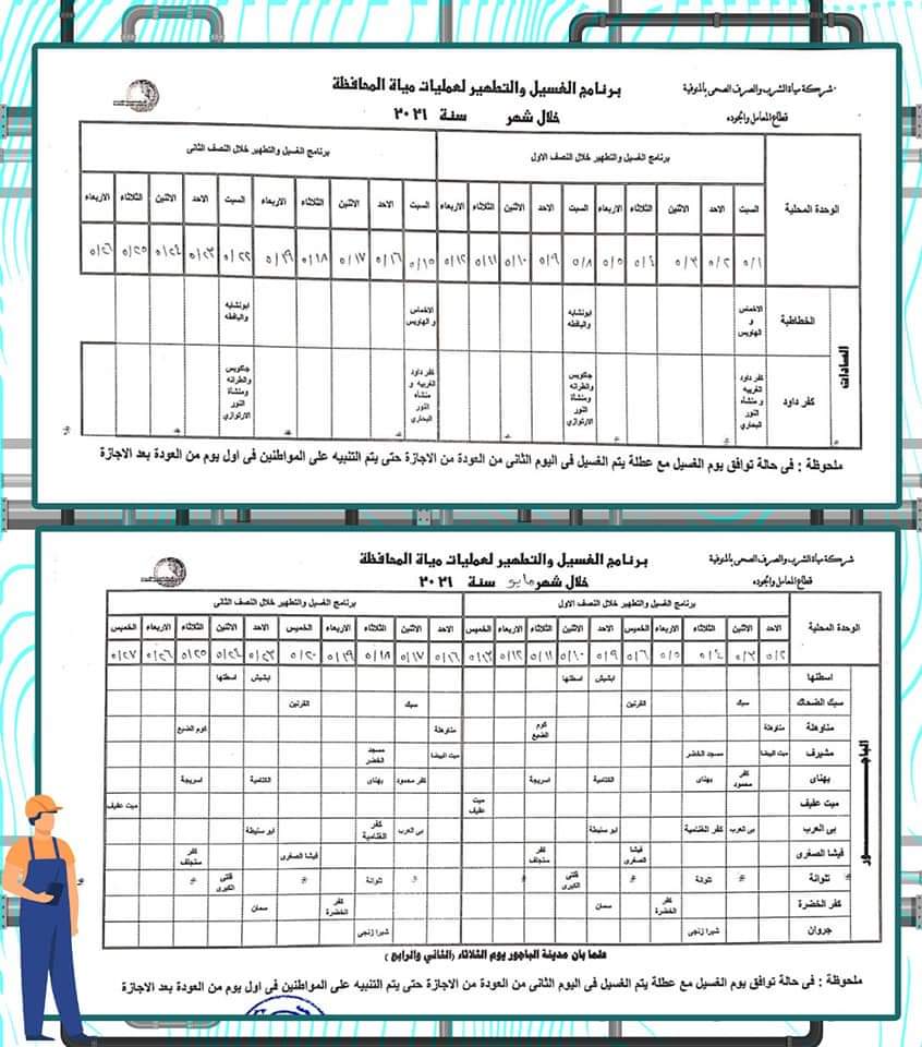 ننشر خطة الغسيل والانقطاع الشهري لشبكات مياه المنوفية
