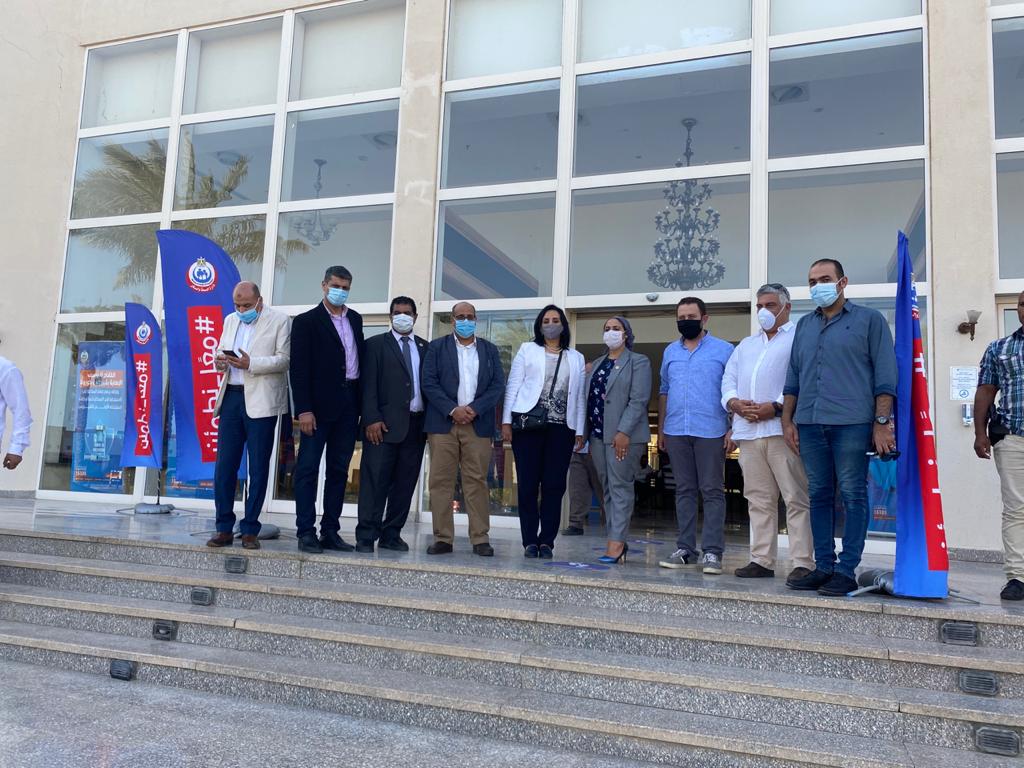 رافقها خلال الجولة المهندسة إيناس سمير، نائب محافظ جنوب سيناء، والدكتور أيمن رخا، وكيل وزارة الصحة والسكان، ومحمد حجاج، مدير عام الإدارة العامة لتراخيص المنشآت الفندقية بالإدارة المركزية للمنشآت الفندقية والمحال والأنشطة السياحية بوزارة السياحة والآثار، وعدد من ممثلي مكتب الوزارة بشرم الشيخ.