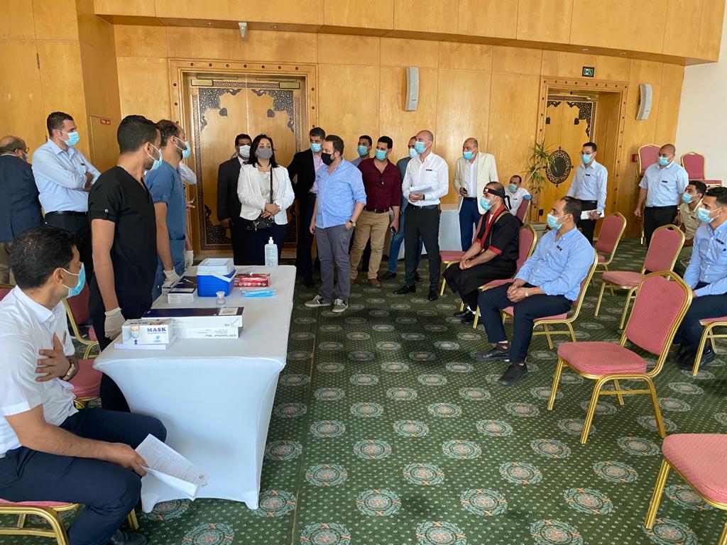 وأشادت نائب الوزير بالجهد الذي تبذله الفرق الطبية في تطعيم العاملين بالقطاع السياحي، مشيرة إلى أن عمليات التطعيم بمحافظتي البحر الأحمر وجنوب سيناء تسير على قدم وساق، وذلك بالتعاون مع وزارة الصحة والسكان، والغرف الفندقية بالمحافظتين، مؤكدة أنه سيتم الانتهاء من تطعيم جميع العاملين بالقطاع في المحافظتين في القريب العاجل، خاصة في ظل اتباع الدولة المصرية لكافة الإجراءات الاحترازية، وبث رسالة طمأنة للسائحين بأمان المقصد السياحي المصري والحفاظ على سلامة العاملين بالقطاع والمواطنين والسائحين.