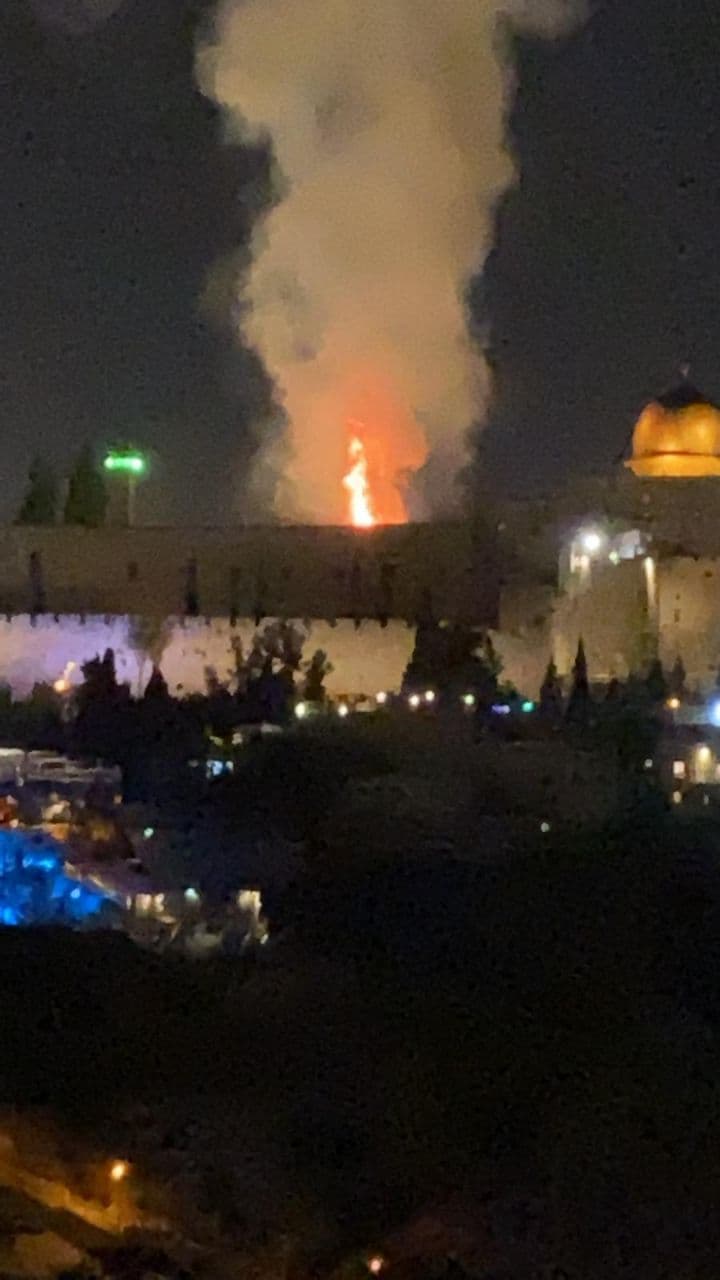 اندلاع حريق في مجمع المسجد الأقصى (صور وفيديو)