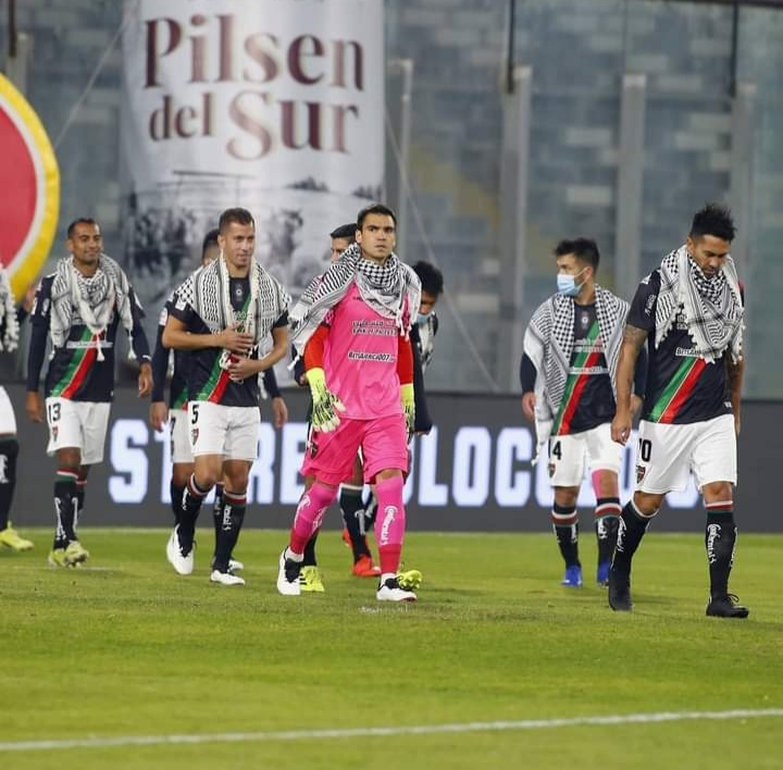 في لقطة إنسانية من الطراز الأول، فاجأ لاعبو نادي بالستينو التشيلي، الجماهير وهم يرتدون الشماغ الفلسطيني، وذلك قبل مواجهة فريق كولو كولو في مباريات الدوري.