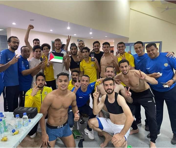 والتقط لاعبو نادي الإسماعيلي صورة لهم مع العلم الفلسطيني، في غرفة الملابس، وذلك بعد انتهاء المباراة التي جمعت الدراويش مع فريق البنك الأهلي، والتي انتهت بفوز برازيل مصر بهدفين دون رد.