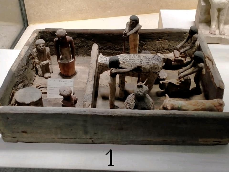 1- نموذج خشبي يمثل صناعة الجعة في جانب وفي جانب آخر يصور الريف المصري القديم ويعود هذا النموذج الخشبي البديع لعصر الدولة الوسطى حوالي 2000 ق.م، ويعطي انطباع عن الحياة اليومية ويصور حياة العمال في المجتمع المصري القديم.