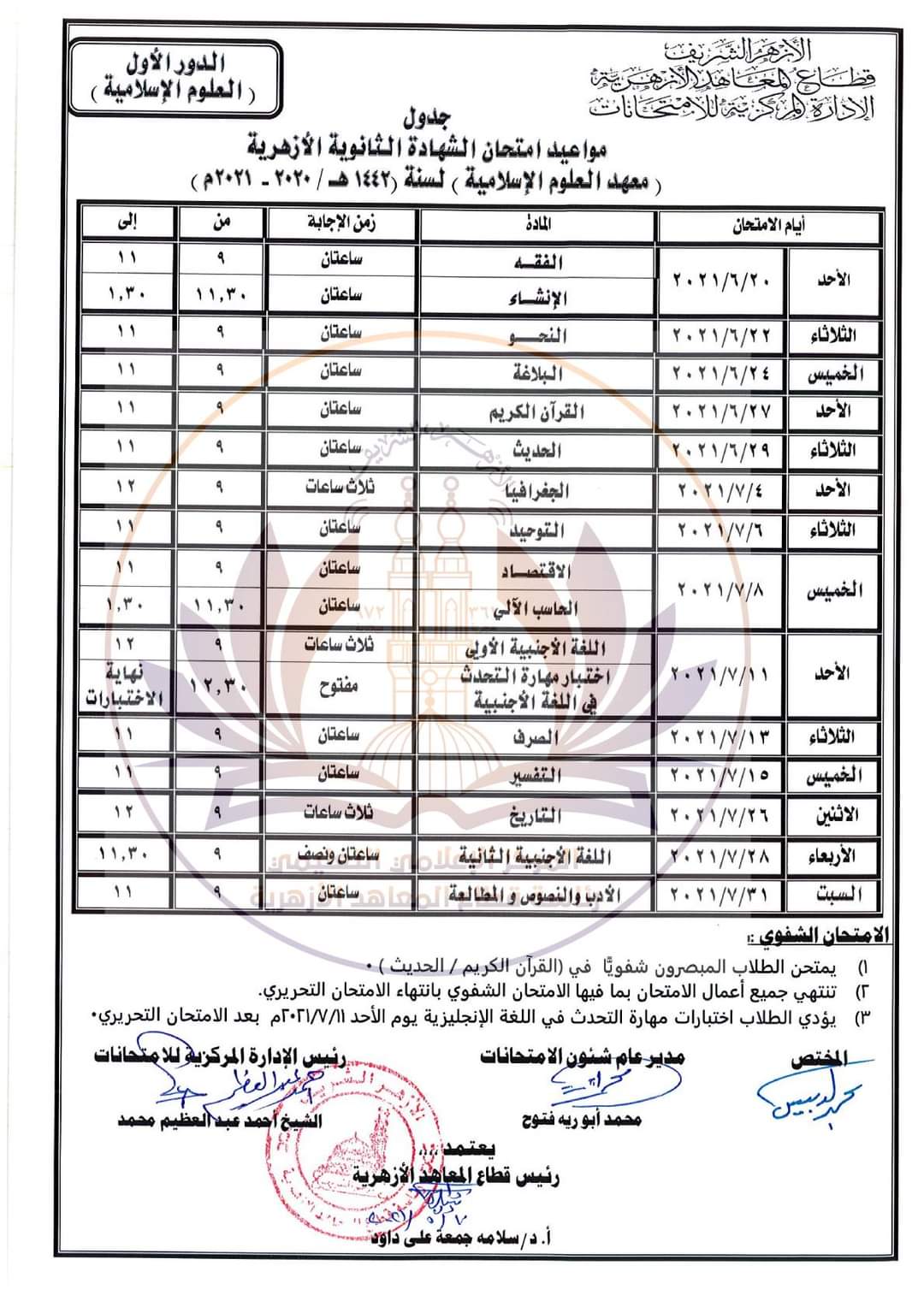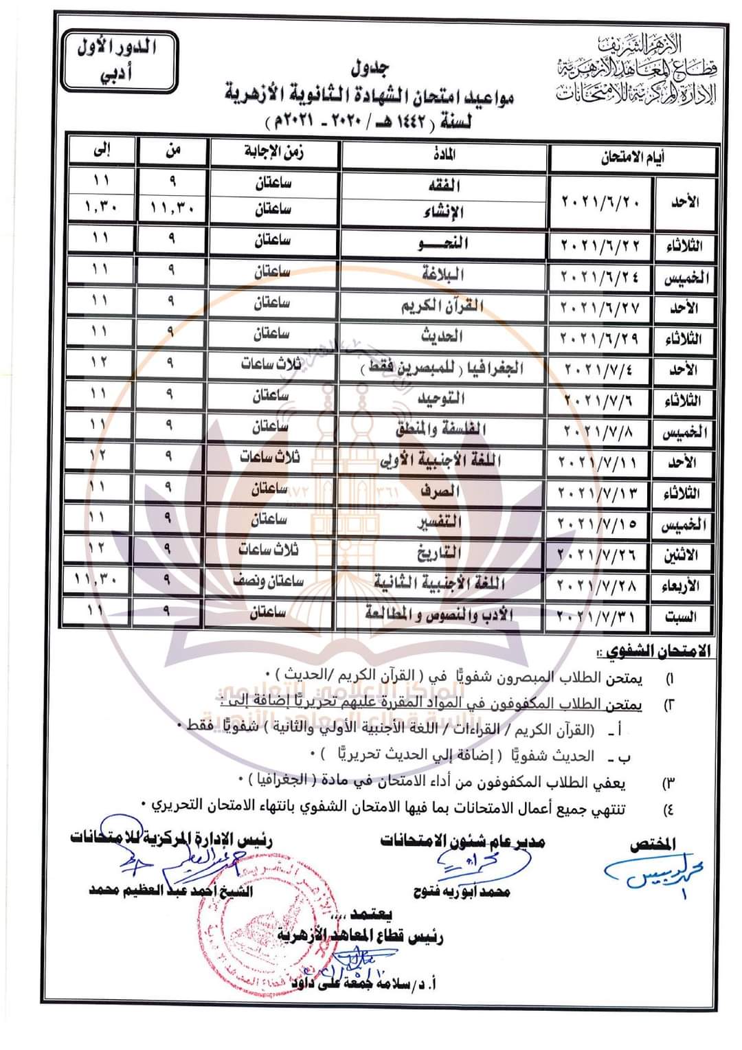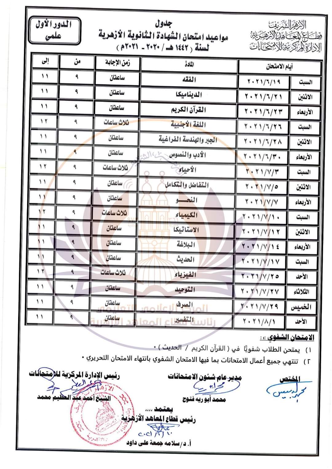 إعلان جداول امتحانات الثانوية الأزهرية.. تبدأ 19 يونيو وتنتهي 1 أغسطس