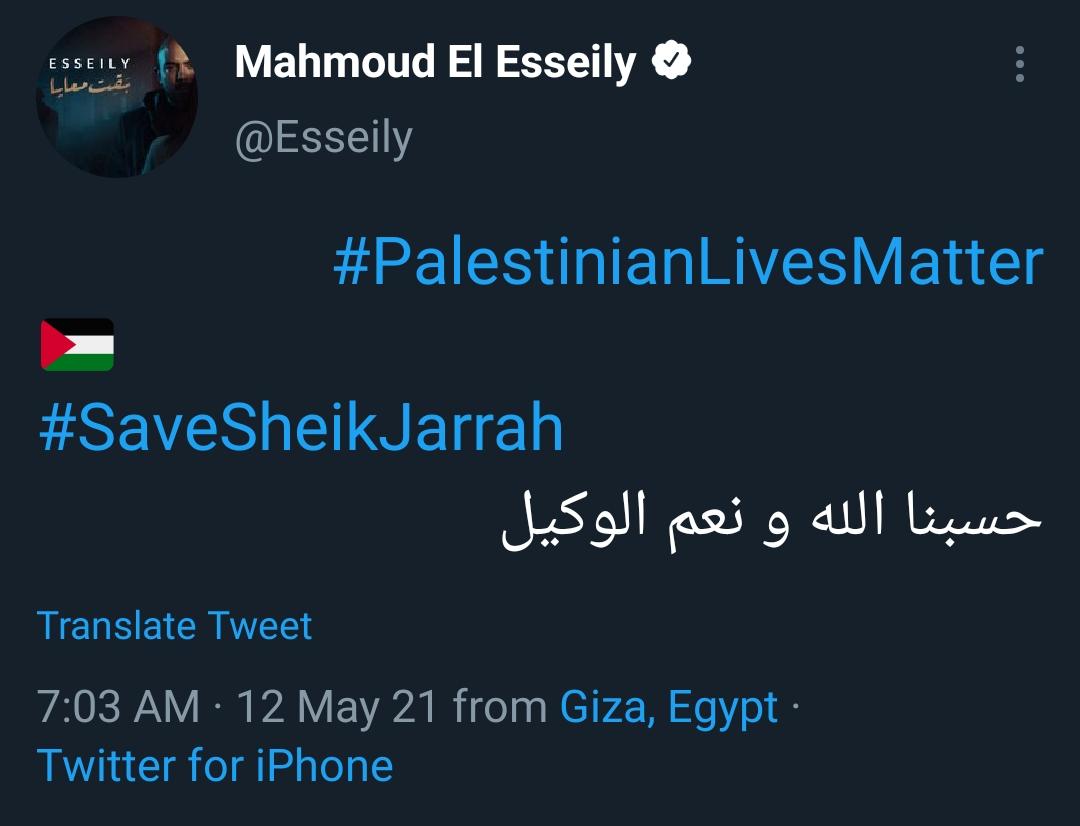 وكتب محمود العسيلي، تدوينة عبر حسابه الشخصي على موقع التغريدات القصيرة "تويتر"، وقال: " انقذوا حى الشيخ جراح.. حسبنا الله ونعم الوكيل".