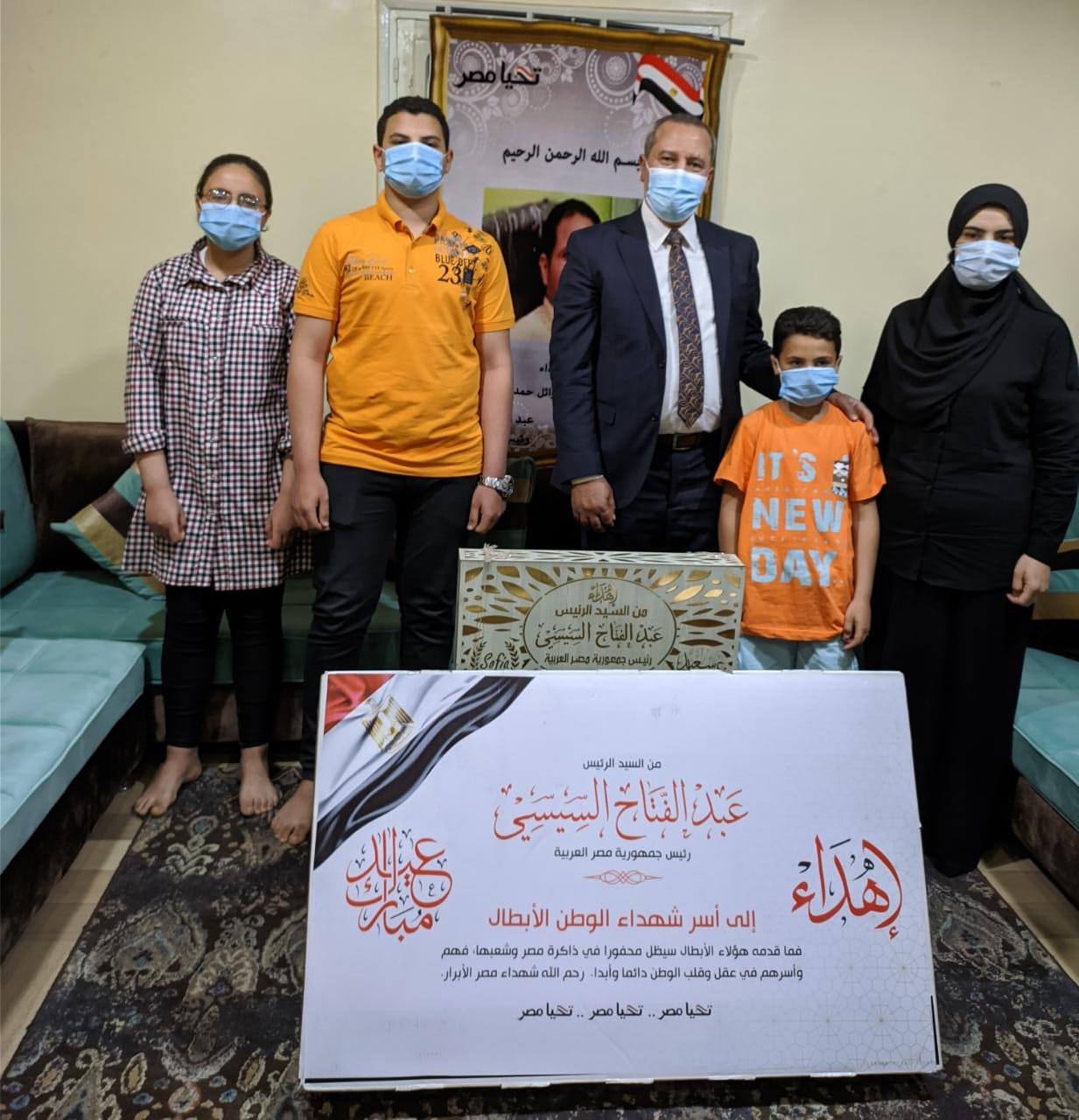 أعلنت وزارة الصحة والسكان، تنفيذ عدد من الزيارات لمنازل أسر الشهداء من الأطقم الطبية بعدد من محافظات الجمهورية وتقديم الهدايا العينية والمادية المقدمة من الرئيس عبد الفتاح السيسى رئيس الجمهورية بمناسبة الاحتفال بعيد الفطر المبارك.