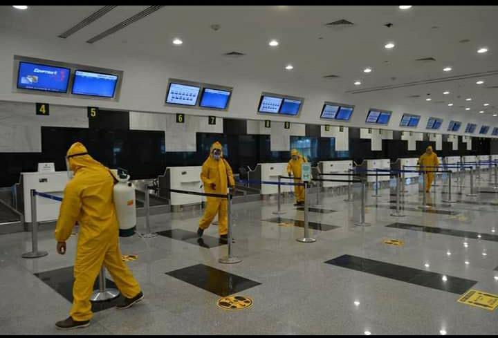وشملت عمليات التعقيم جميع صالات السفر والوصول بالمطارات ومناطق سيور الحقائب وعربات نقل الأمتعة وكاونترات إنهاء السفر والوصول والجوازات وجميع المرافق بالمطارات.