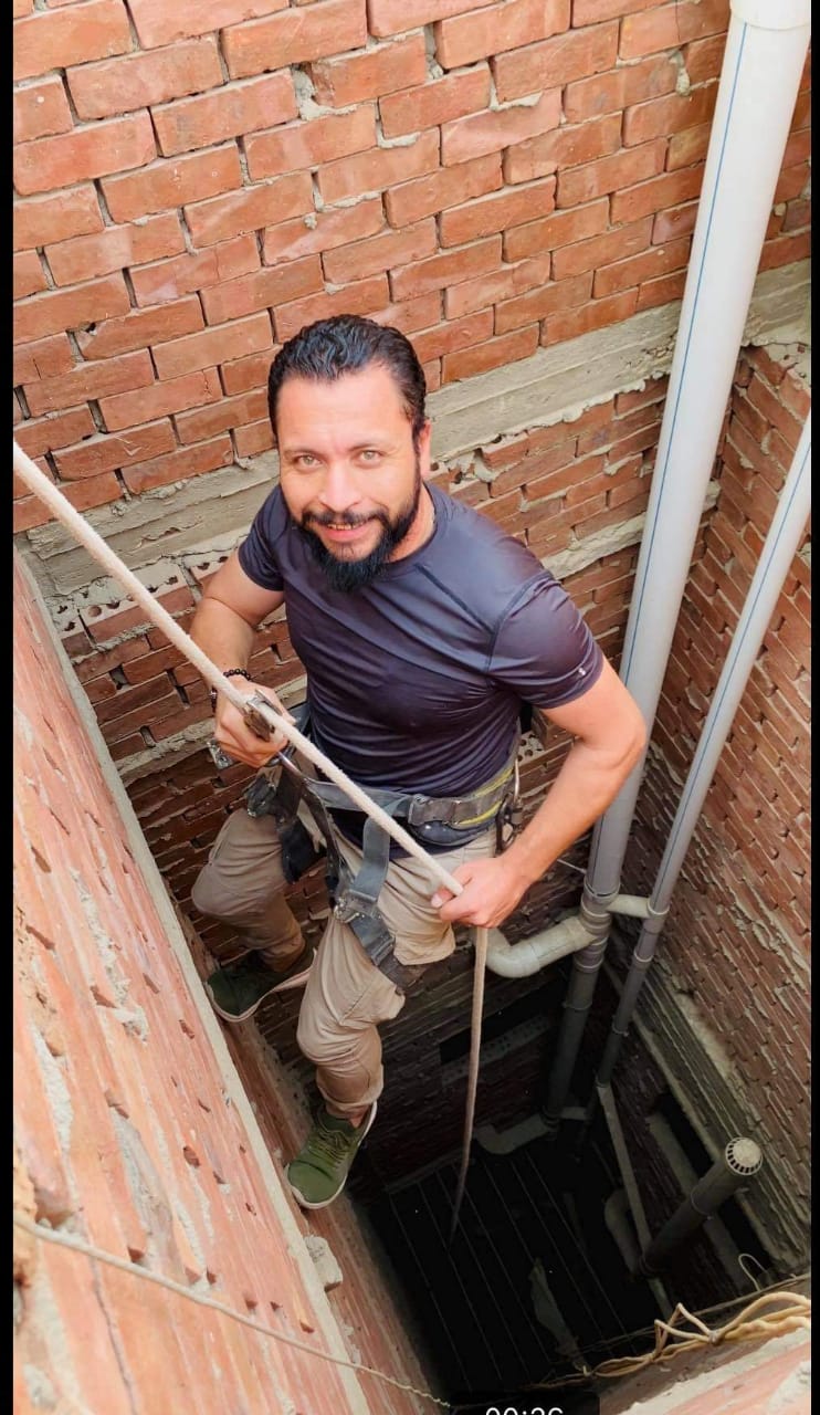وعن المخاطرة بحياته، يقول:" أنا بشوف إن دي مش مخاطرة، والسبب راجع إني تدربت على ده كويس جدا، وبستخدم أدوات تأمني من السقوط، وهي موجودة بشكل دائم في عربيتي، ودي لأي حالة طوارئ سواءً إنسان أو حيوان أو مساعدة إنسانية".