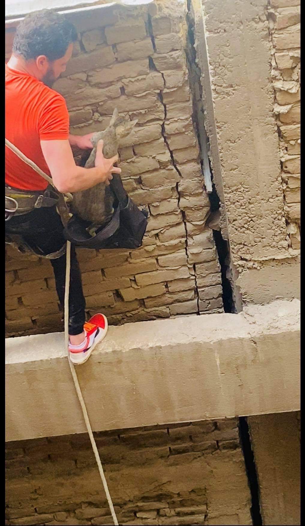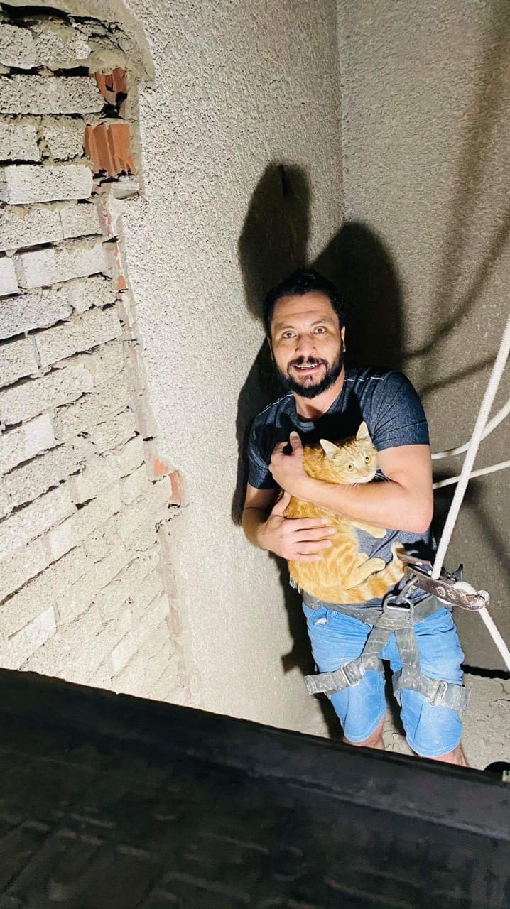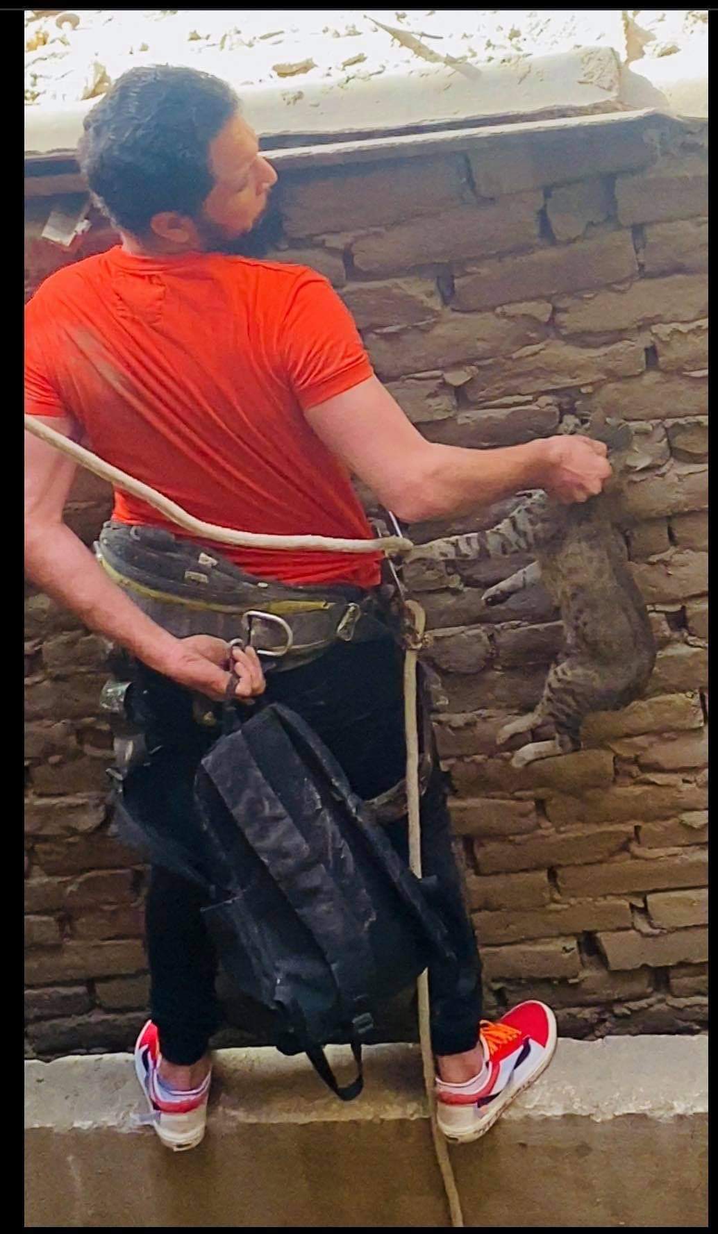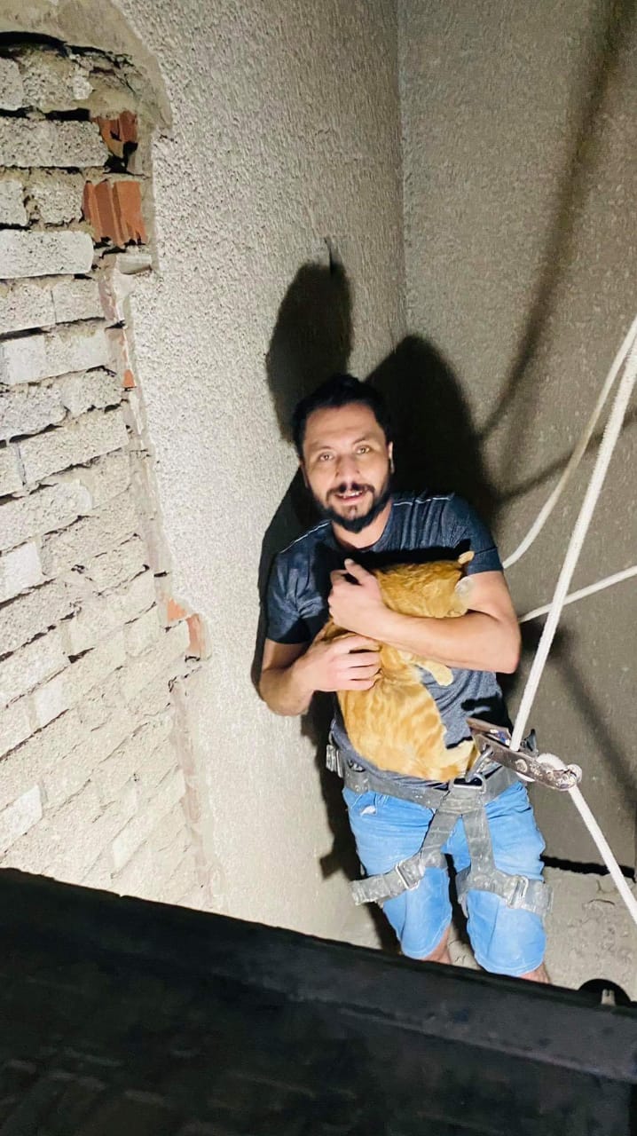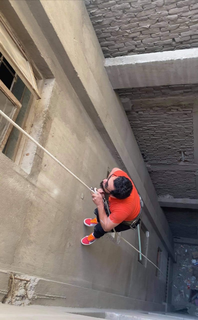 وعن أصعب الحالات التي أنقذها، يقول:" حالة قط العمرانية، كانت أكتر حالة صعوبة وخطورة، كانت في الأول سهلة بالنسبالي، لكن لما وصلت للسطح العمارة قابلتني مشكلة، وهي إني مش هقدر أنزل من المنور بسبب ضيقه، ووجود أسياخ الخرسانة عائق لمسافة 7 أدوار من أصل 12".